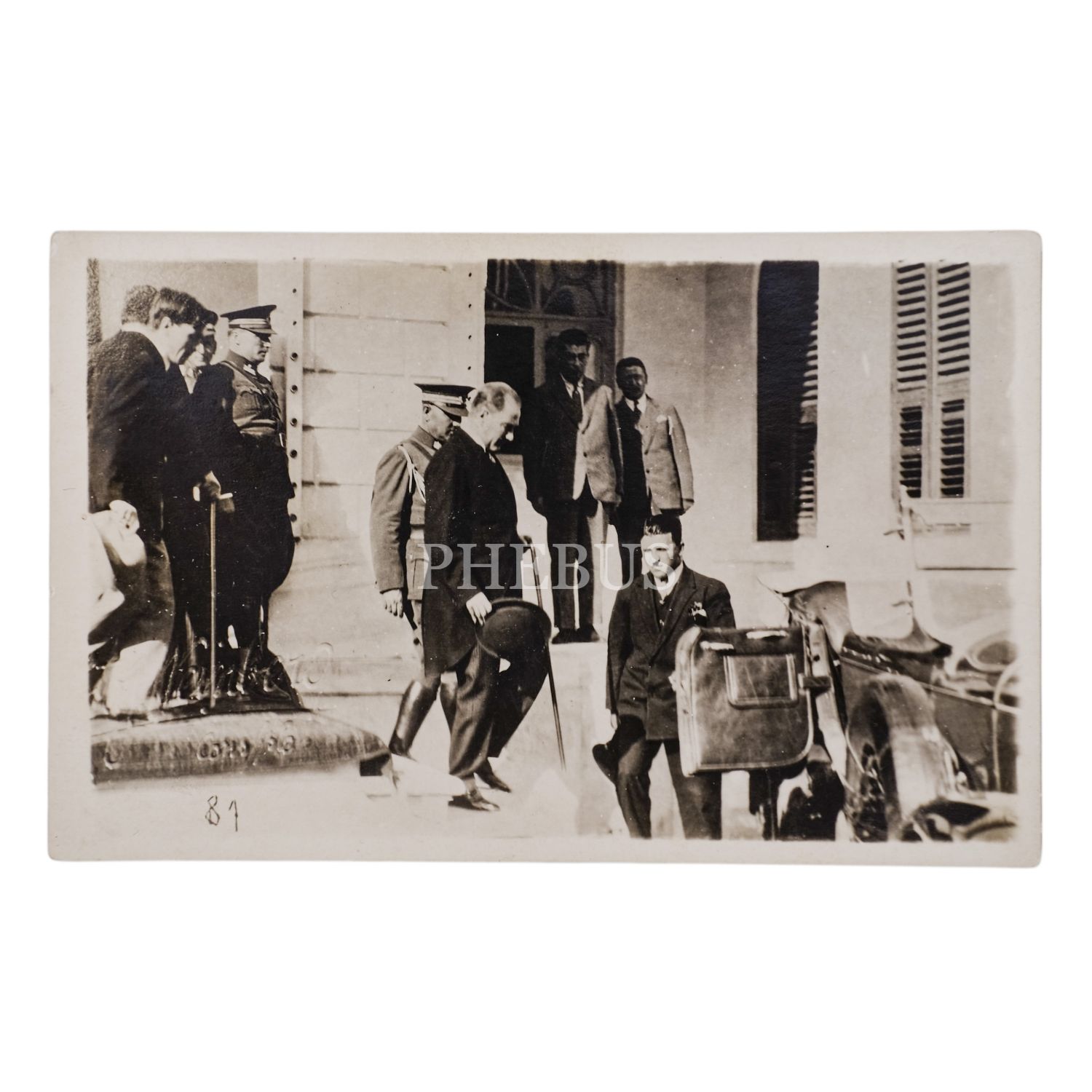 Cumhuriyet döneminde İstanbul’a ilk ziyaretini ancak 1927 yılında gerçekleştirebilen Mustafa Kemal Atatürk´ü, İstanbul Valiliği´ni ziyaretinden sonra binadan ayrılırken gösteren bir enstantane fotoğraf, 14x9 cm...