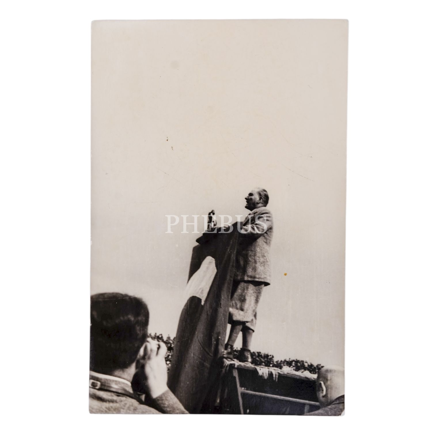 Mustafa Kemal Atatürk, Etimesgut "Türkkuşu" Tesislerinin açılışında, kürsü üzerinden konuşma yaparken, 3 Mayıs 1935, 9x14 cm...