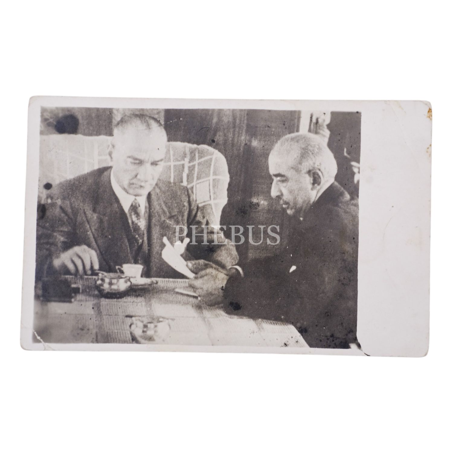 Mustafa Kemal Atatürk ve İsmet İnönü, İstanbul´dan Ankara´ya hareket ederken, tren vagonunda sohbet halinde, 23 Eylül 1935, 9x14 cm...