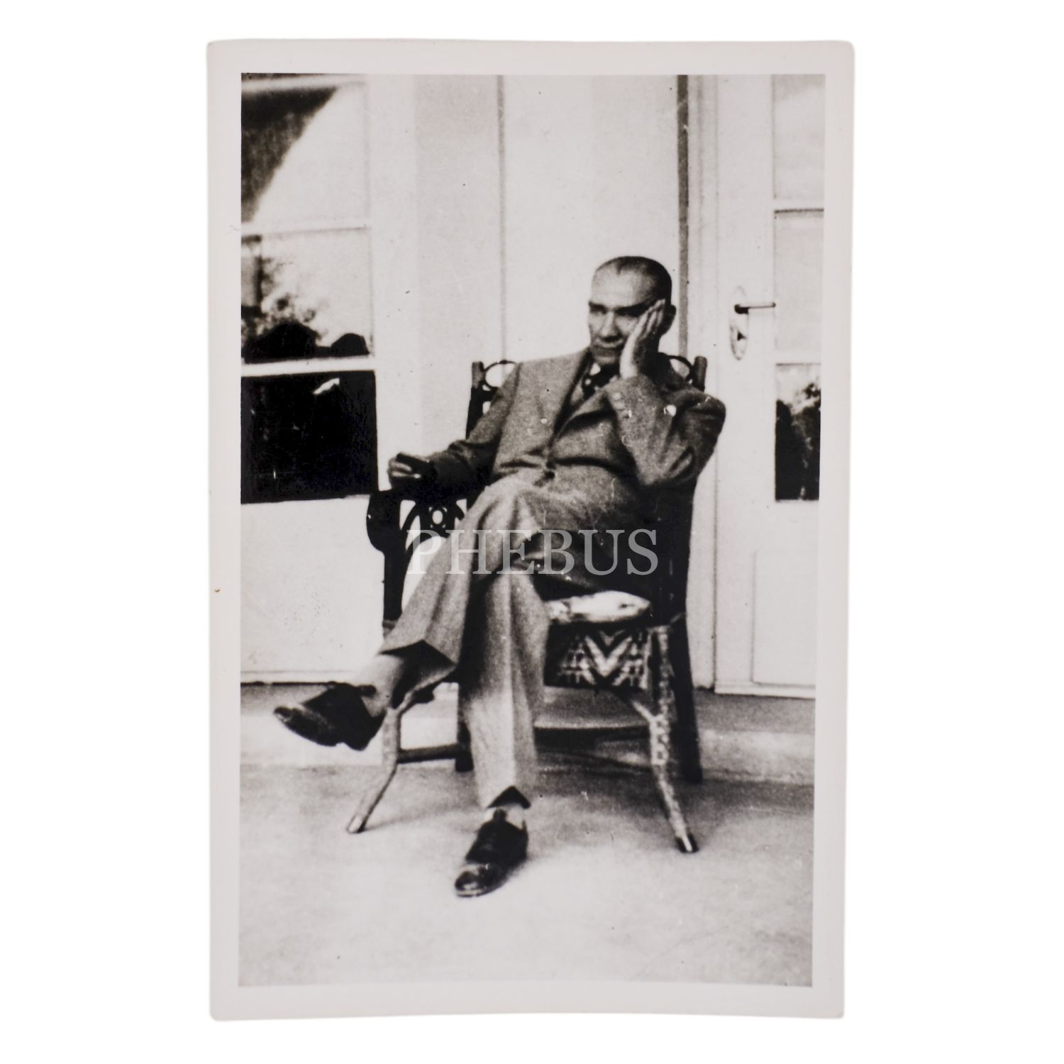 Mustafa Kemal Atatürk, Atatürk Orman Çiftliği´nde bulunan Marmara Köşkü´nde dinleniyor, 9x14 cm...