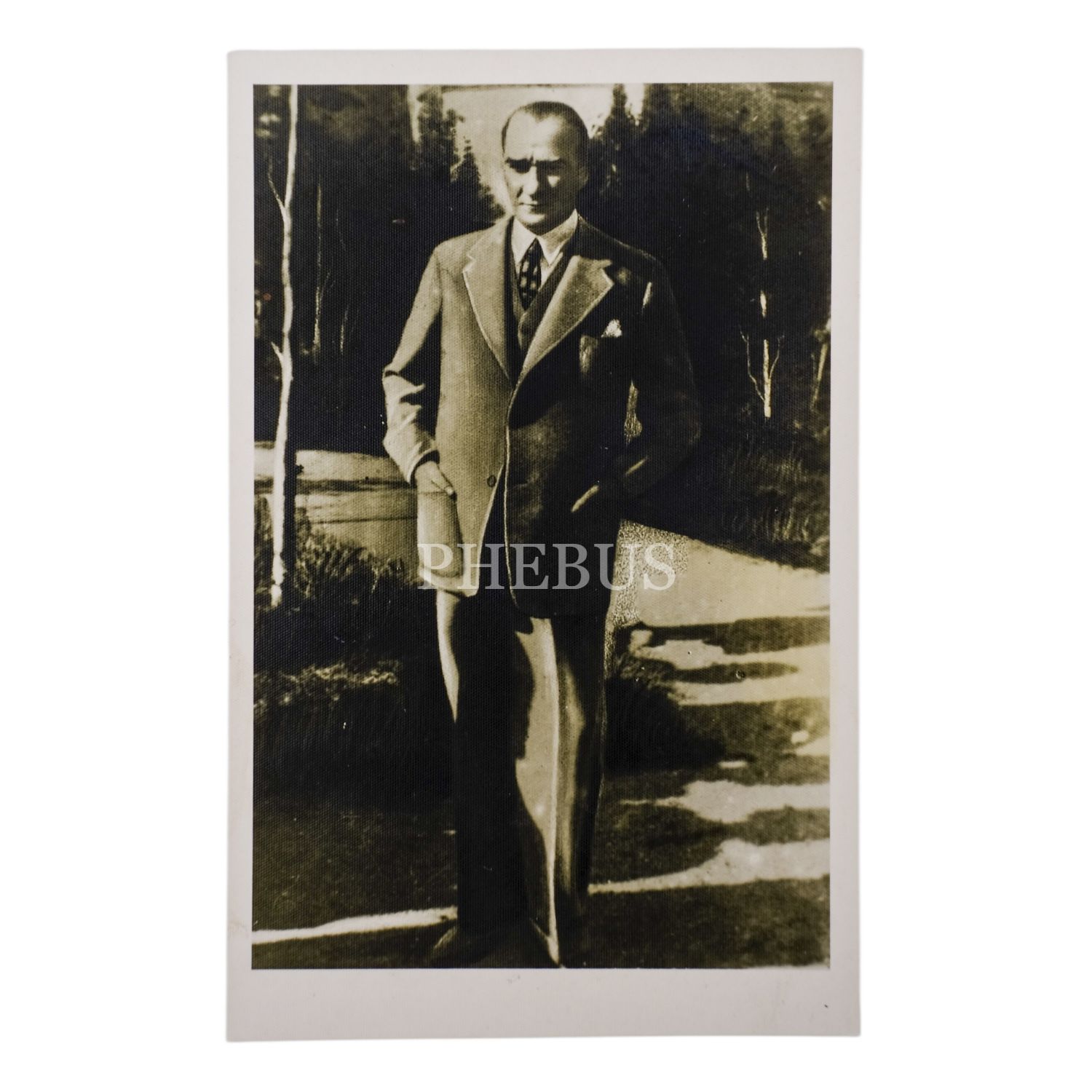 Mustafa Kemal Atatürk, Atatürk Orman Çiftliği içinde yürüyüşte, 9x14 cm...