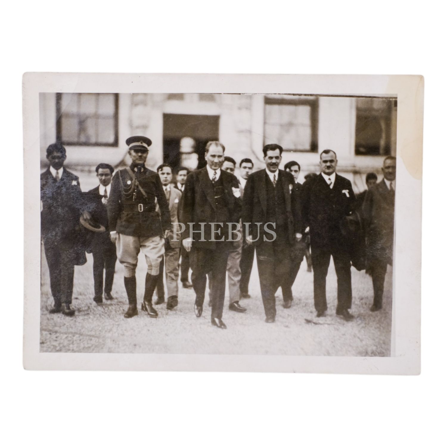 Mustafa Kemal Atatürk, Kazım Özalp ve Kılıç Ali, Dolmabahçe Sarayı önünde, 1929, 12x9 cm...
