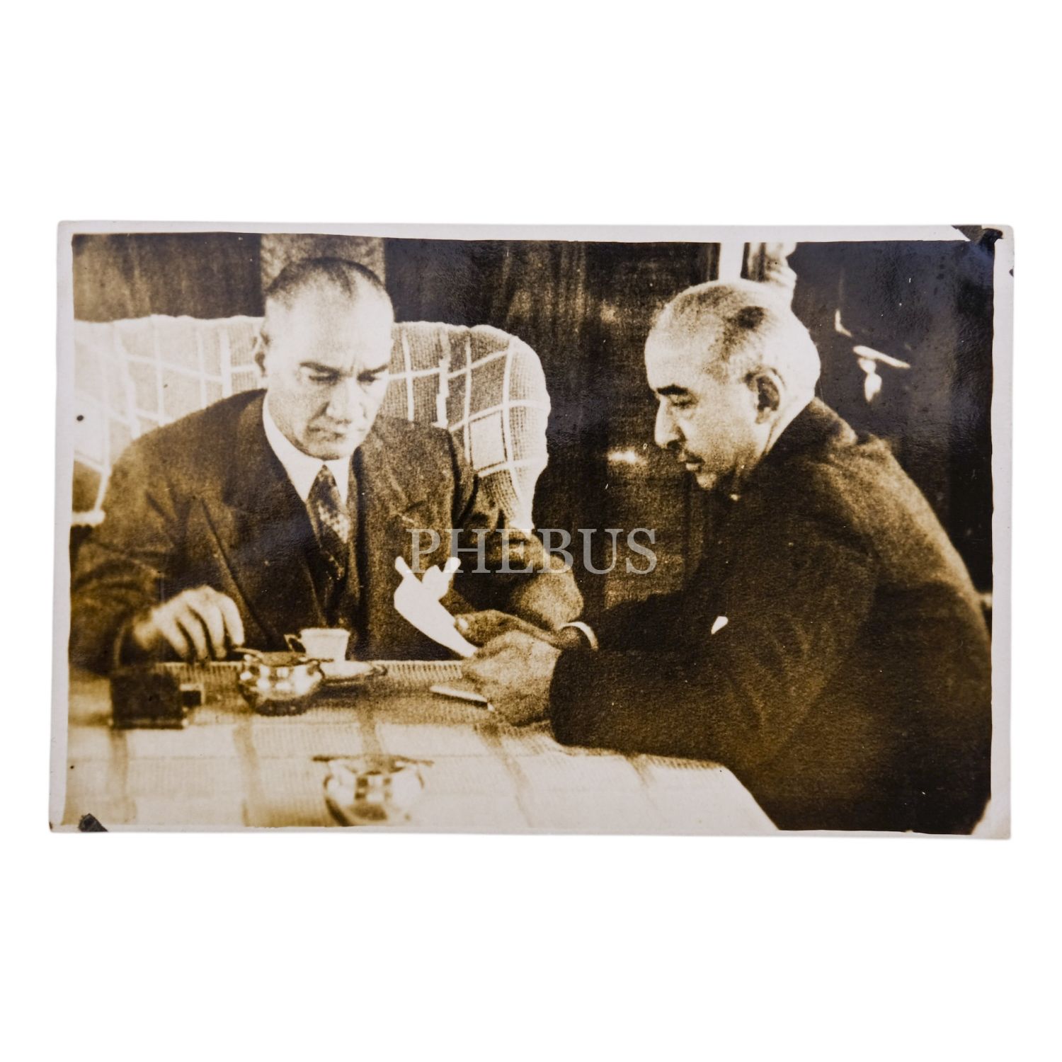 Mustafa Kemal Atatürk ve İsmet İnönü, İstanbul´dan Ankara´ya hareket ederken, tren vagonunda sohbet halinde, 23 Eylül 1935, 9x14 cm...