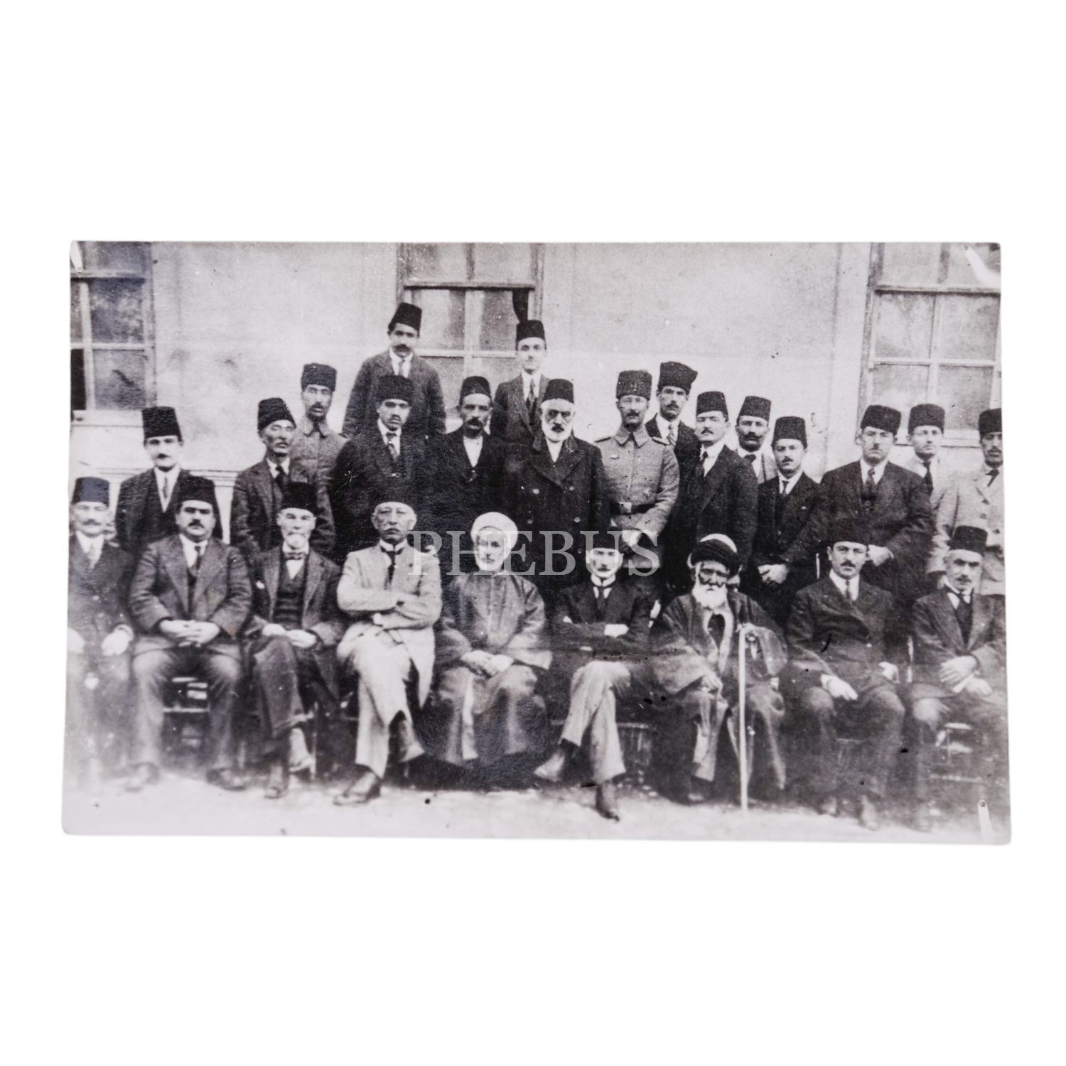 Mustafa Kemal Atatürk´ün, işgale uğrayan Türk topraklarını kurtarmak, Türk bağımsızlığını ve egemenliğini sağlamak maksadı güden vatan evlatlarına çağrıda bulunması üzerine Sivas´ta toplanan Heyet-i Temsiliye üyeleri ile birlikte çektirdiği Sivas Kongresi hatıra fotoğrafı, 17x11 cm...