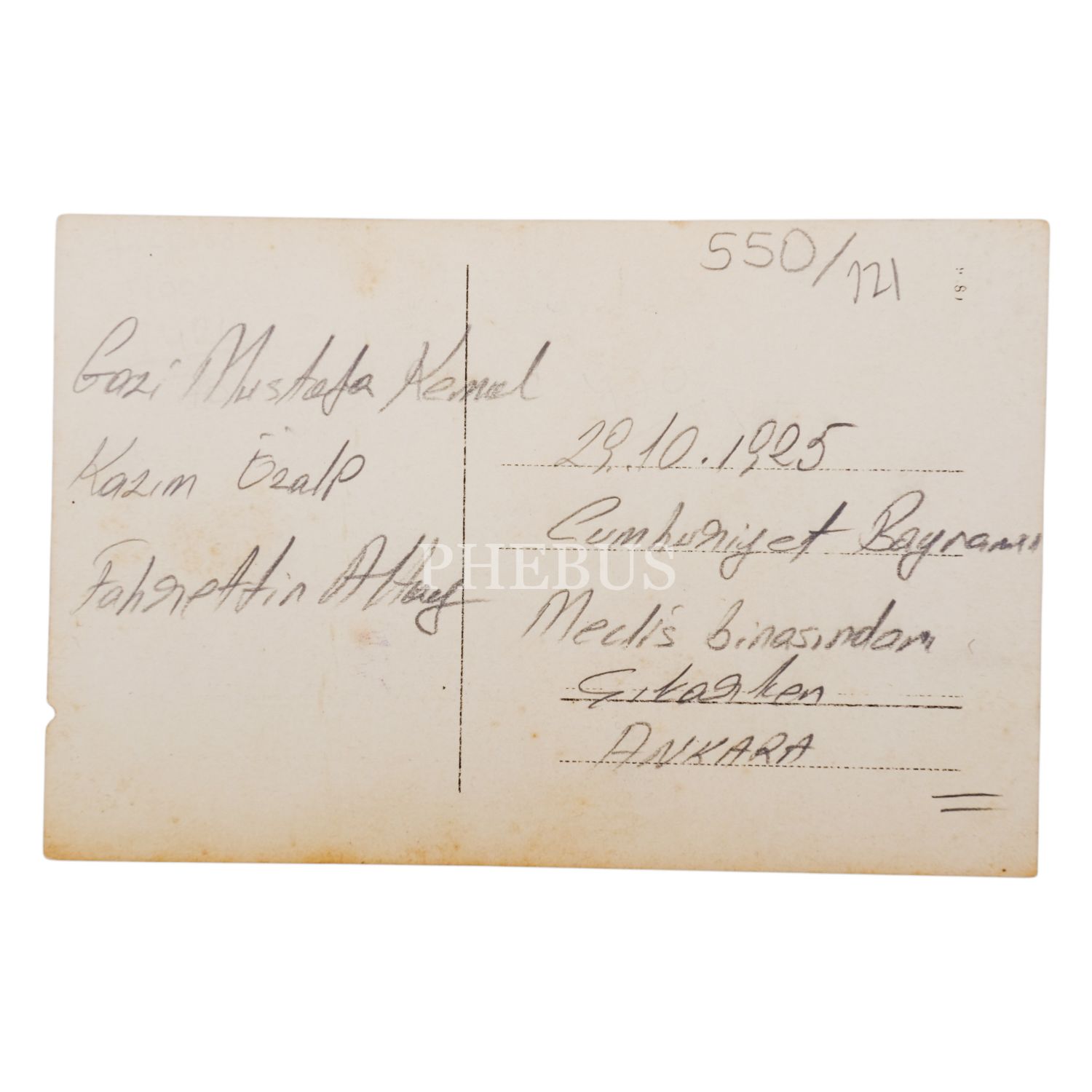 Mustafa Kemal Atatürk, 29 Ekim 1925 Cumhuriyet Bayramı´nda, beraberinde Kazım Özalp ve Fahrettin Altay ile TBMM´den çıkıyor, 13x9 cm...