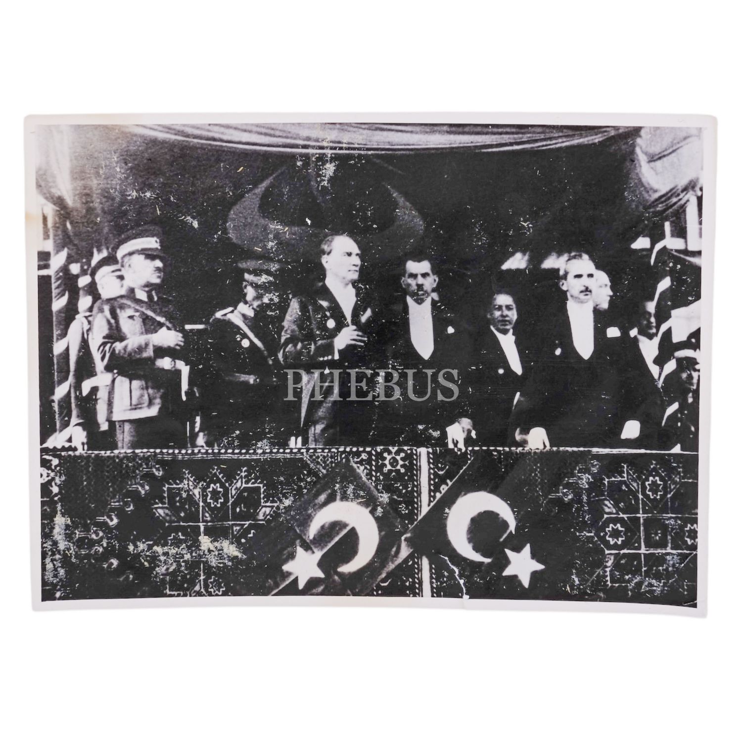 Mustafa Kemal Atatürk, İsmet İnönü, Fevzi Çakmak ve Kazım Özalp, 29 Ekim 1929 Cumhuriyet Bayramı´nda, protokol locasından töreni takip ederken, 17x12 cm...