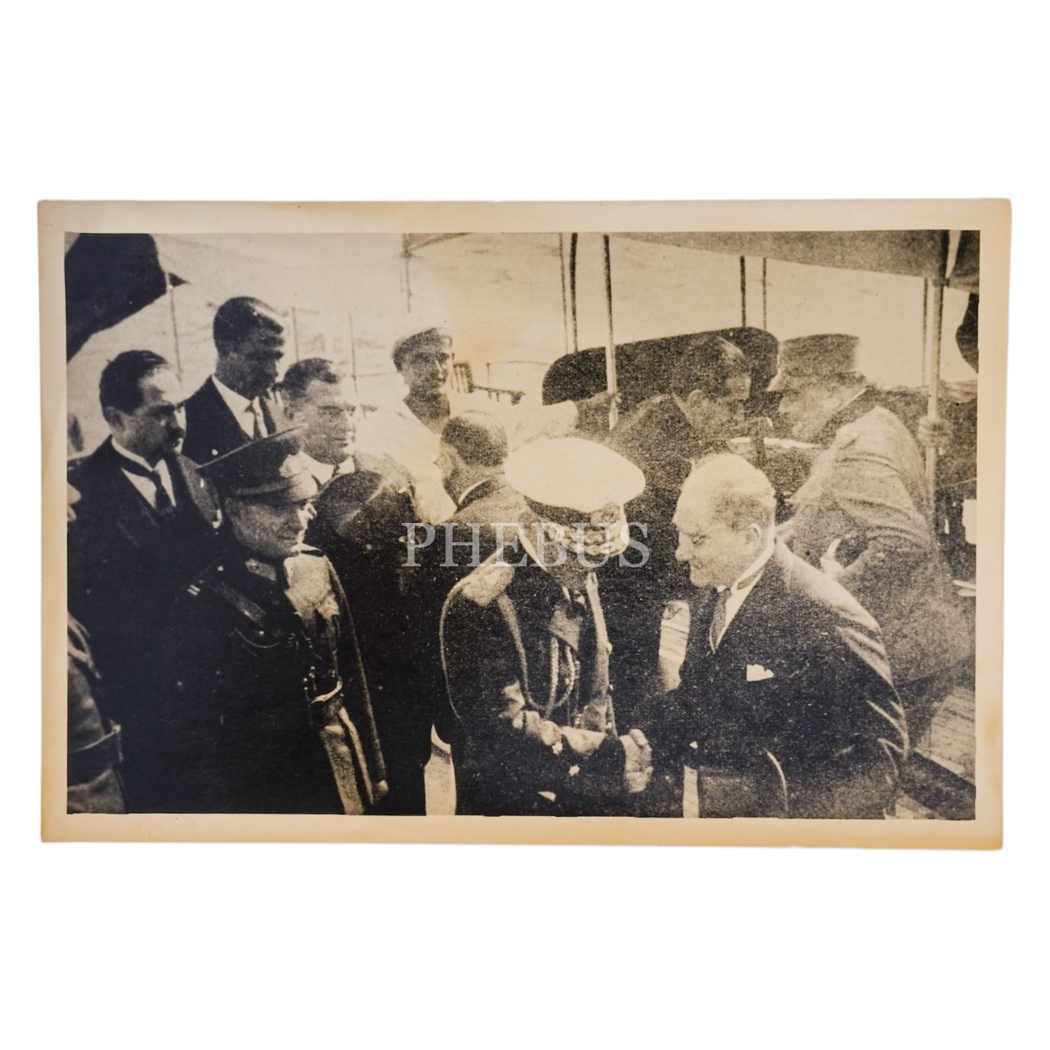 Mustafa Kemal Atatürk, Türkiye´yi ziyaret eden Yugoslavya Kralı Alexandre ile heyetini karşılıyor, 4 Ekim 1933, 17x11 cm...