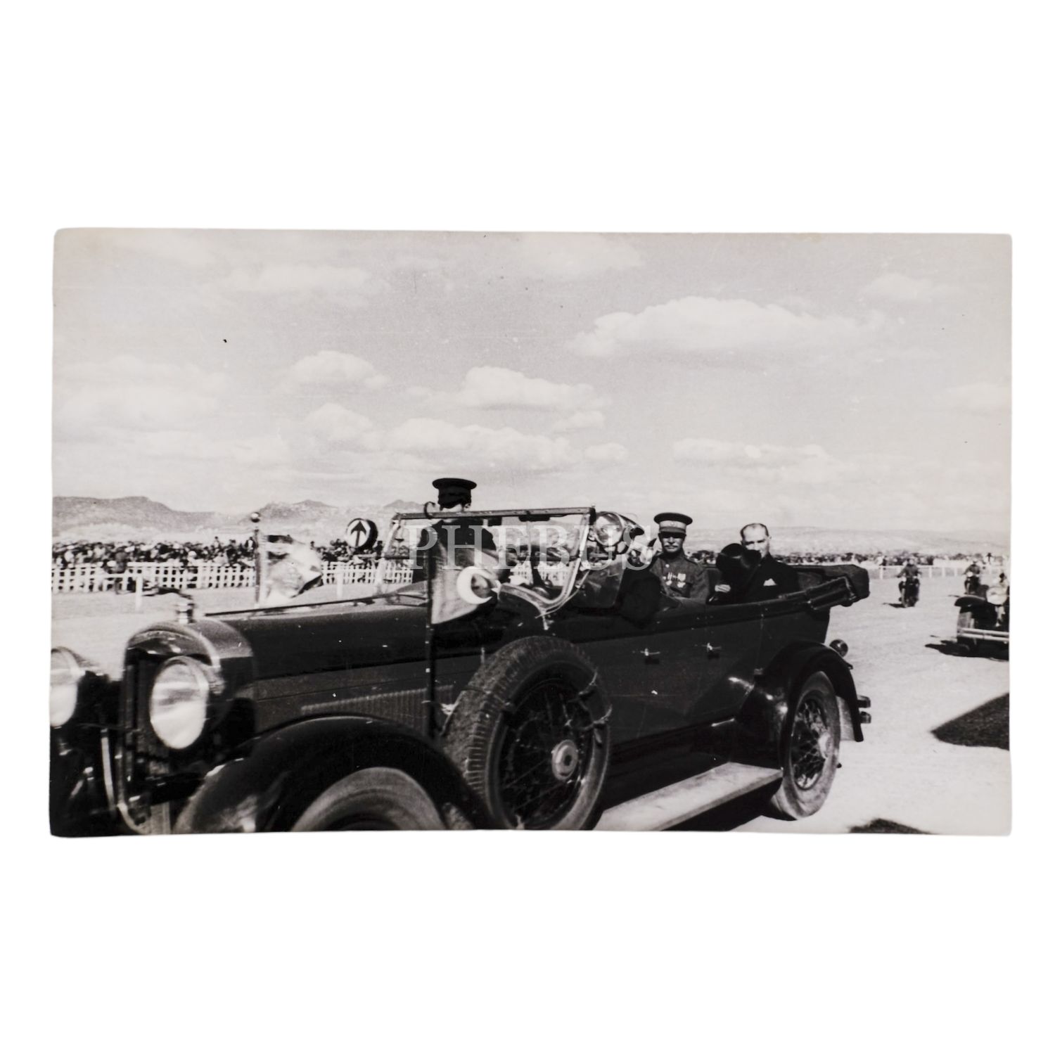Mustafa Kemal Atatürk, Türkiye´yi ziyaret eden İran Şahı Rıza Pehlevi ile birlikte otomobilde, 17 Haziran 1934, Ankara Hipodrom, 14x9 cm...