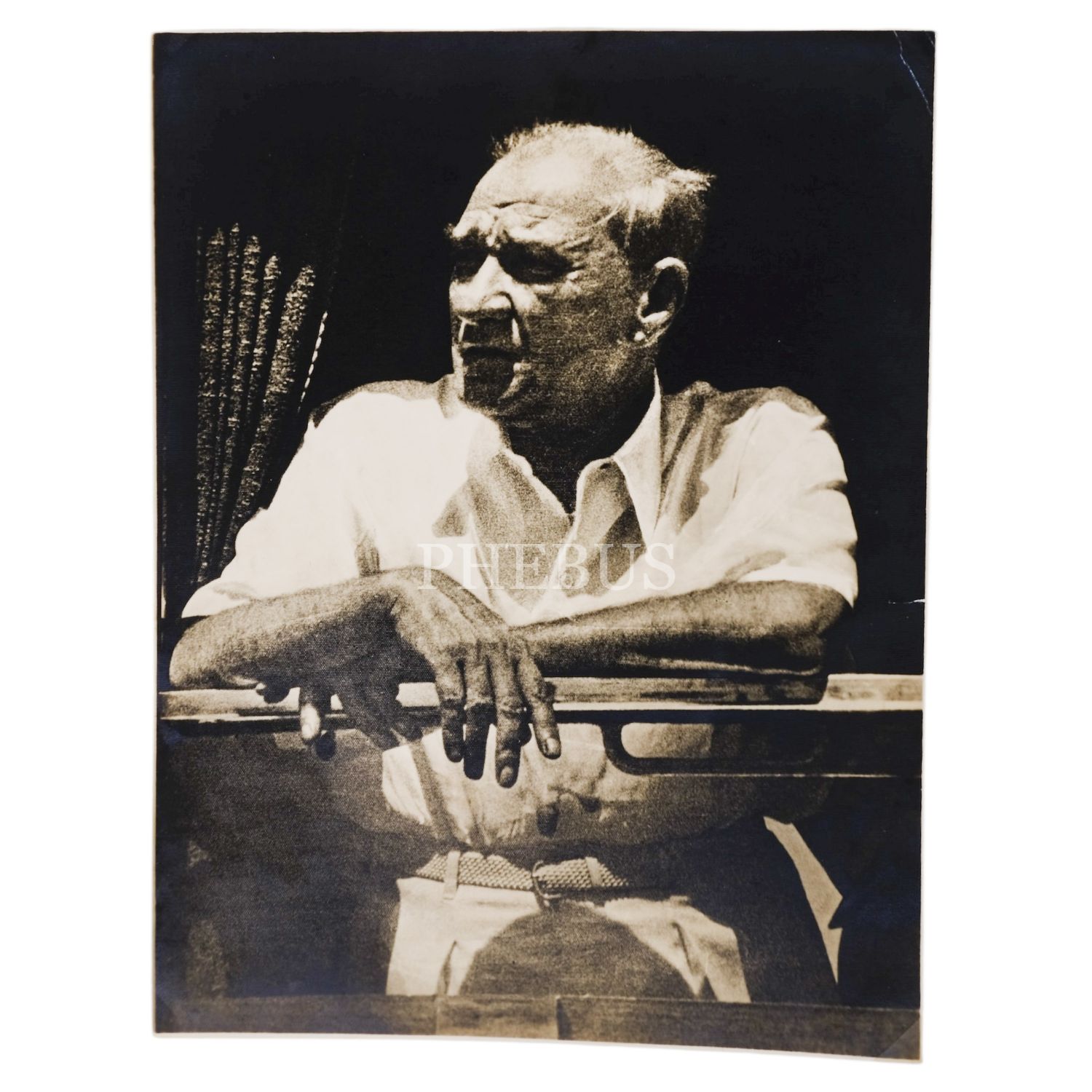 Trakya Manevralarını izlemek için Çerkezköy’den Lüleburgaz’a özel treniyle hareket eden Mustafa Kemal Atatürk´ün, 17 Ağustos 1937 tarihinde tren penceresinde çekilmiş fotoğrafı, 15x20 cm...