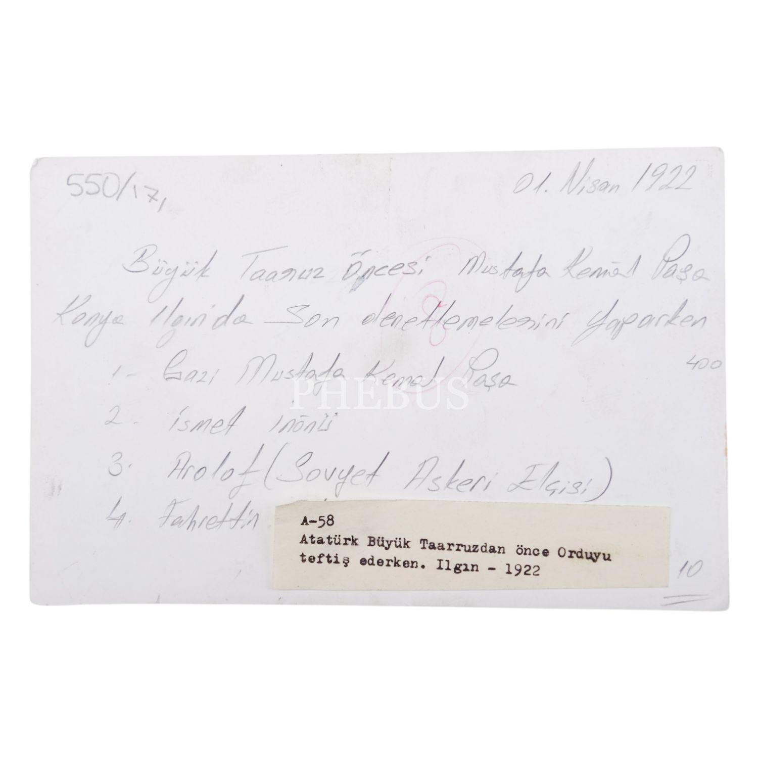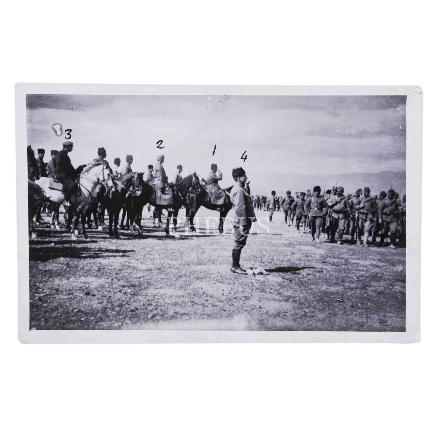 Mustafa Kemal Atatürk, Büyük Taarruz öncesi Konya, Ilgın´da konuşlanan orduyu teftiş ediyor, 18x12 cm...