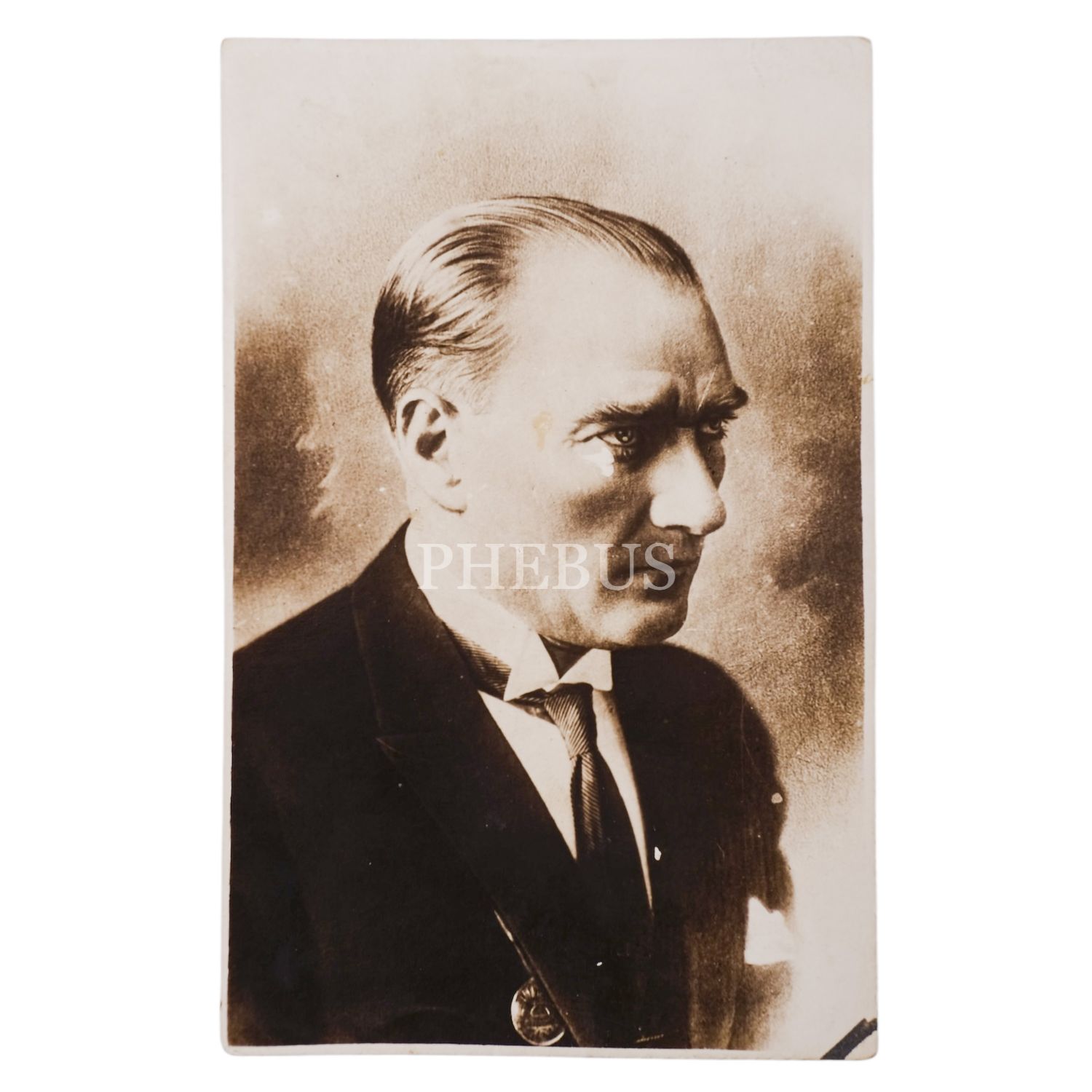Mustafa Kemal Atatürk´ün İstiklal Madalyası ile görüldüğü bir portre fotoğrafı, 9x14 cm...