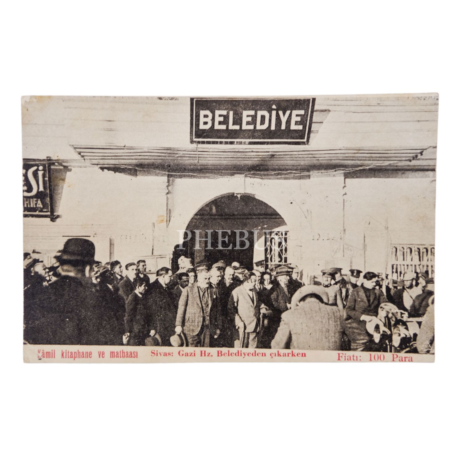 Mustafa Kemal Atatürk´ün Sivas ziyareti sırasında, maiyetiyle birlikte belediye binasından ayrılırken çekilmiş bir fotoğrafı, 20 Kasım 1930, 14x9 cm...
