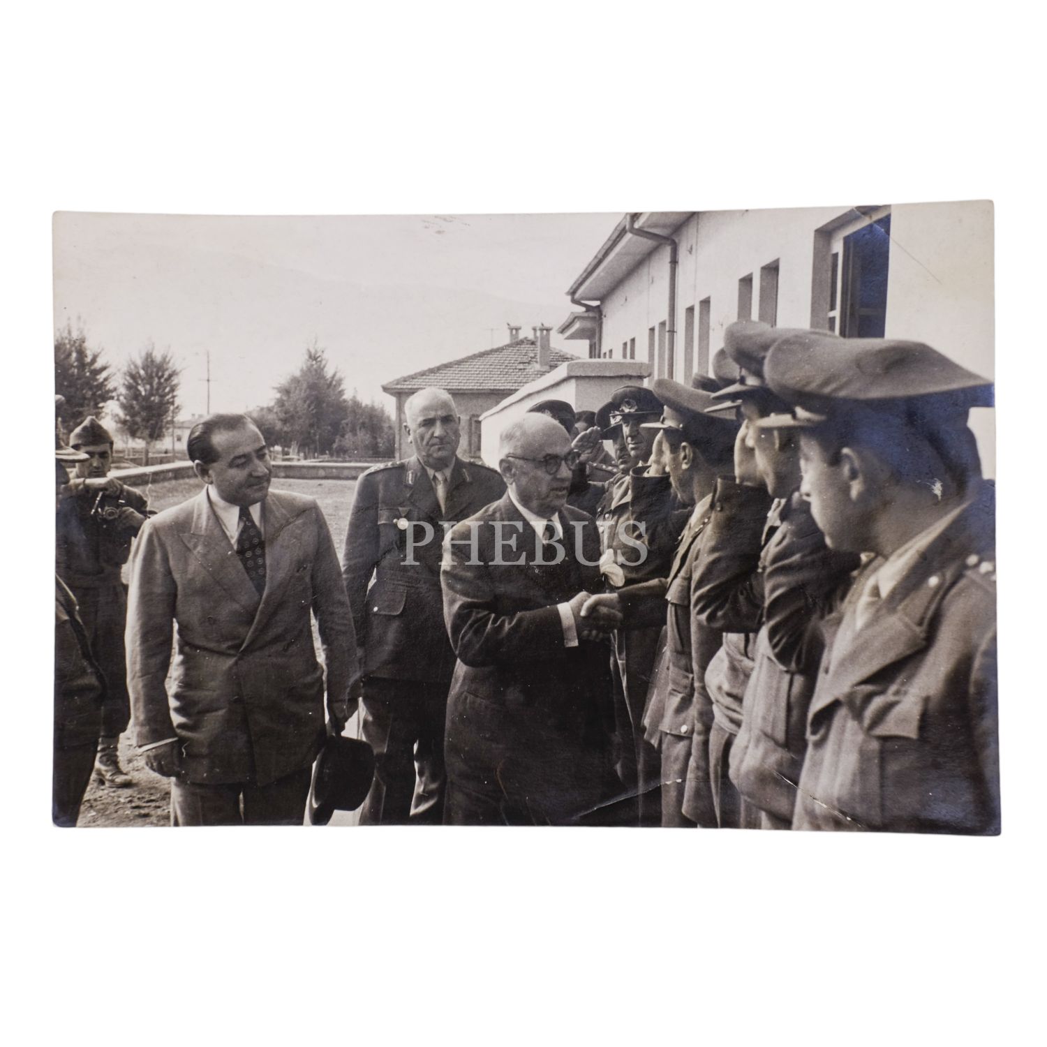 Adnan Menderes, Celal Bayar ve Cemal Gürsel, bir askeri birliği teftişte, 17x11 cm...