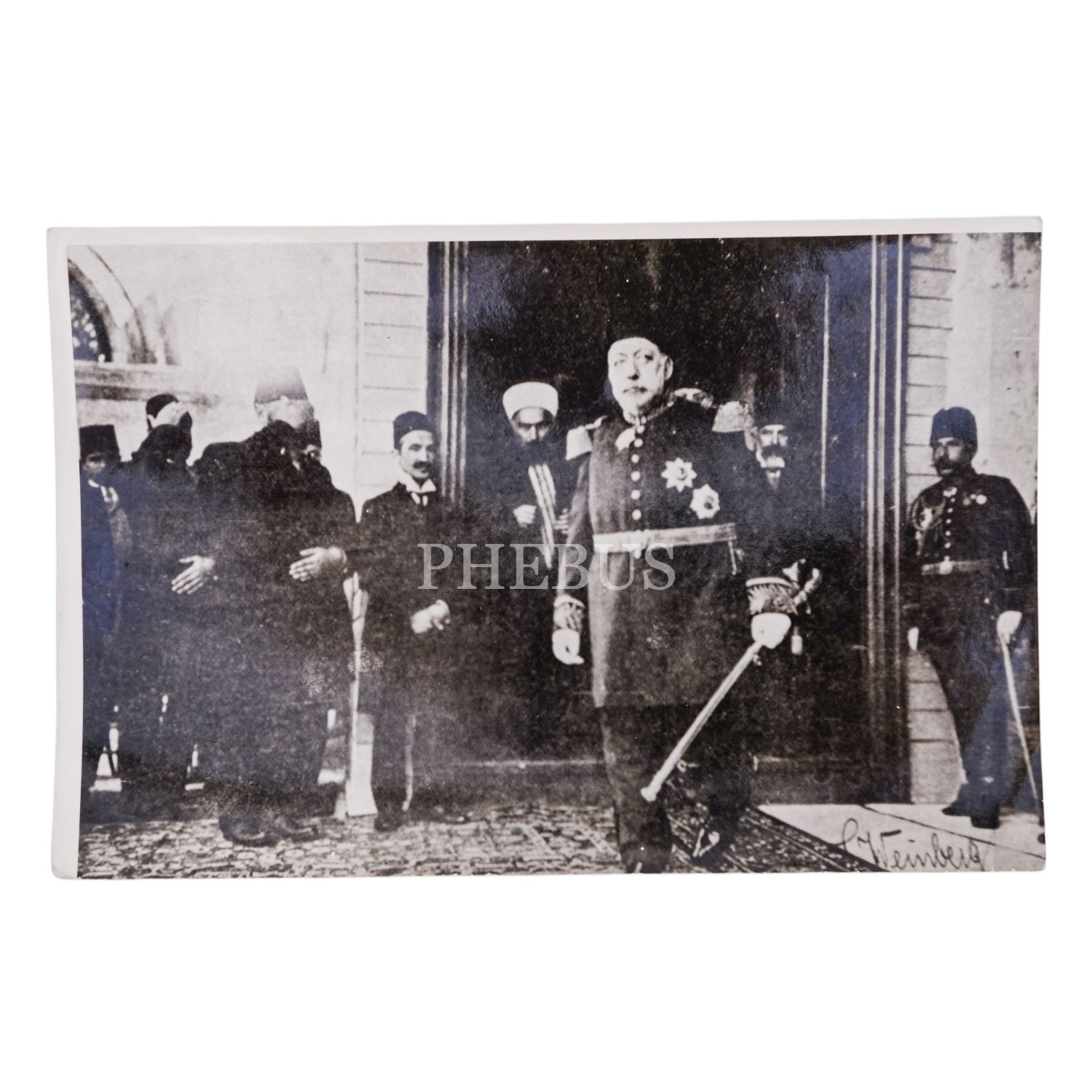 Sultan Mehmed Reşad ve kendisini temenna ile selamlayanlar, 18x12 cm...