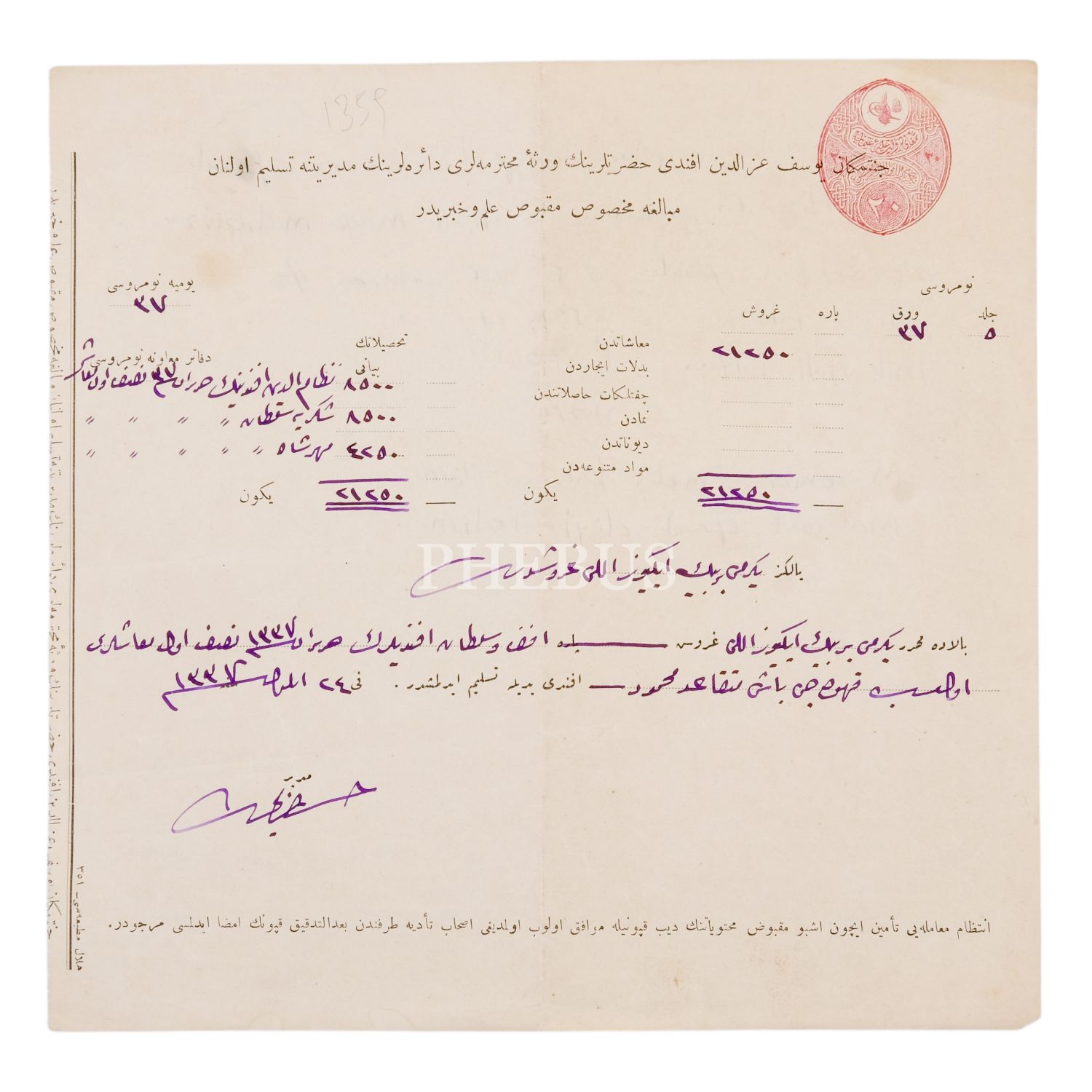 Şehzade Yusuf İzzettin Efendi´nin vereselerine verilen maaşın makbuzu, 22x22 cm...