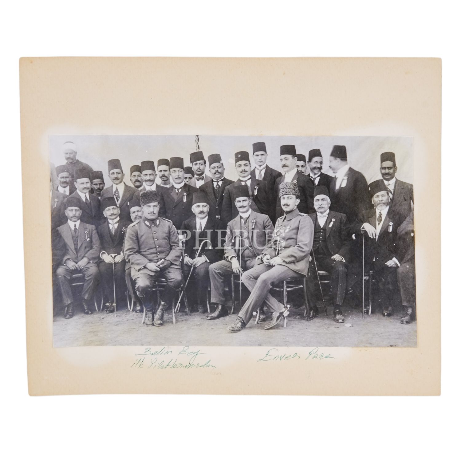 İstanbul´dan Kahire´ye gerçekleştirdikleri tarihi uçuş sonrasında, Yüzbaşı Kemal ve Salim Bey´in hatıra fotoğrafı, 22x13 cm...