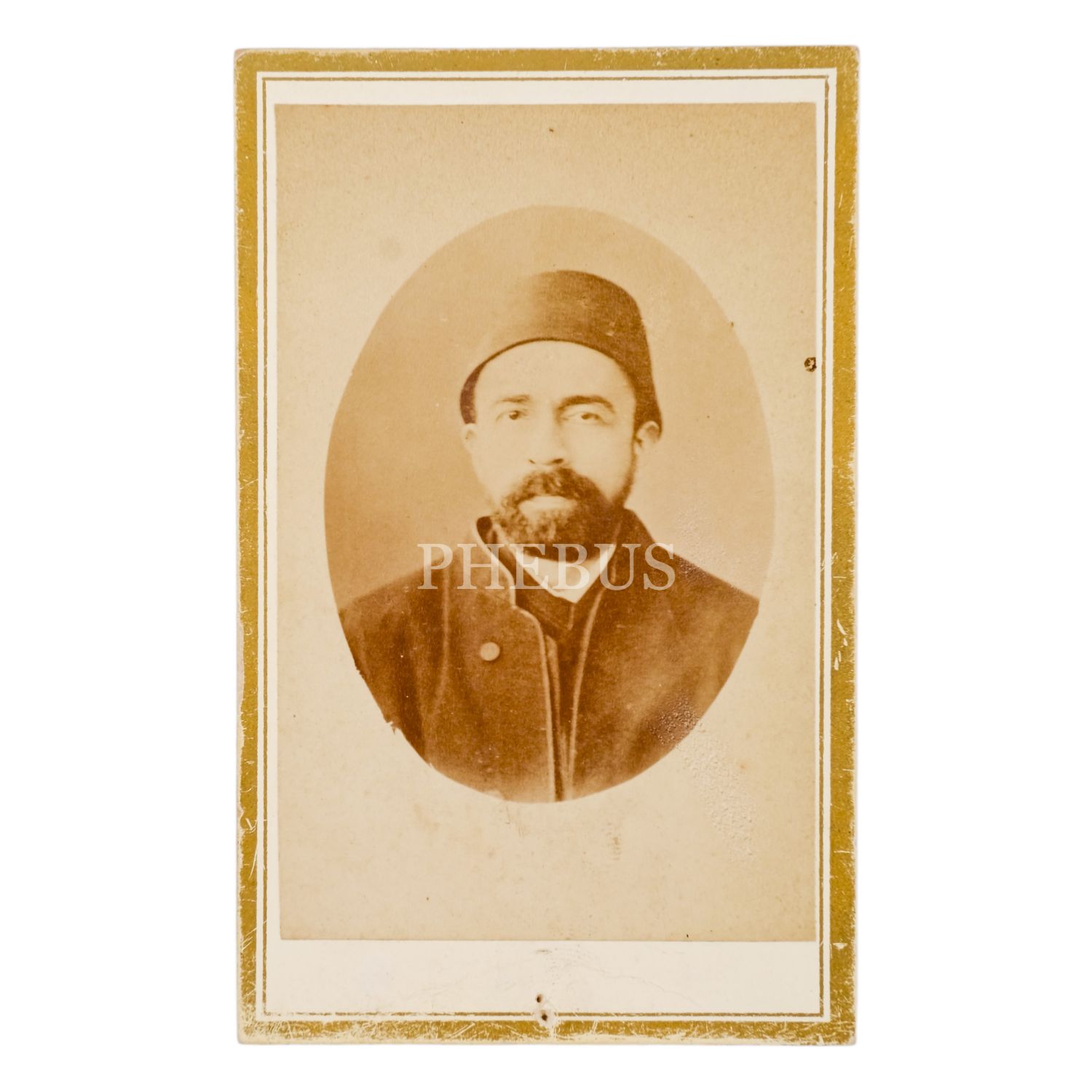Sultan II. Abdülhamid döneminde kısa bir süre sadrazamlık da yapan devlet adamı Ahmed Ârifî Paşa´nın CDV (kartvizit) boy portre fotoğrafı, 7x11 cm...