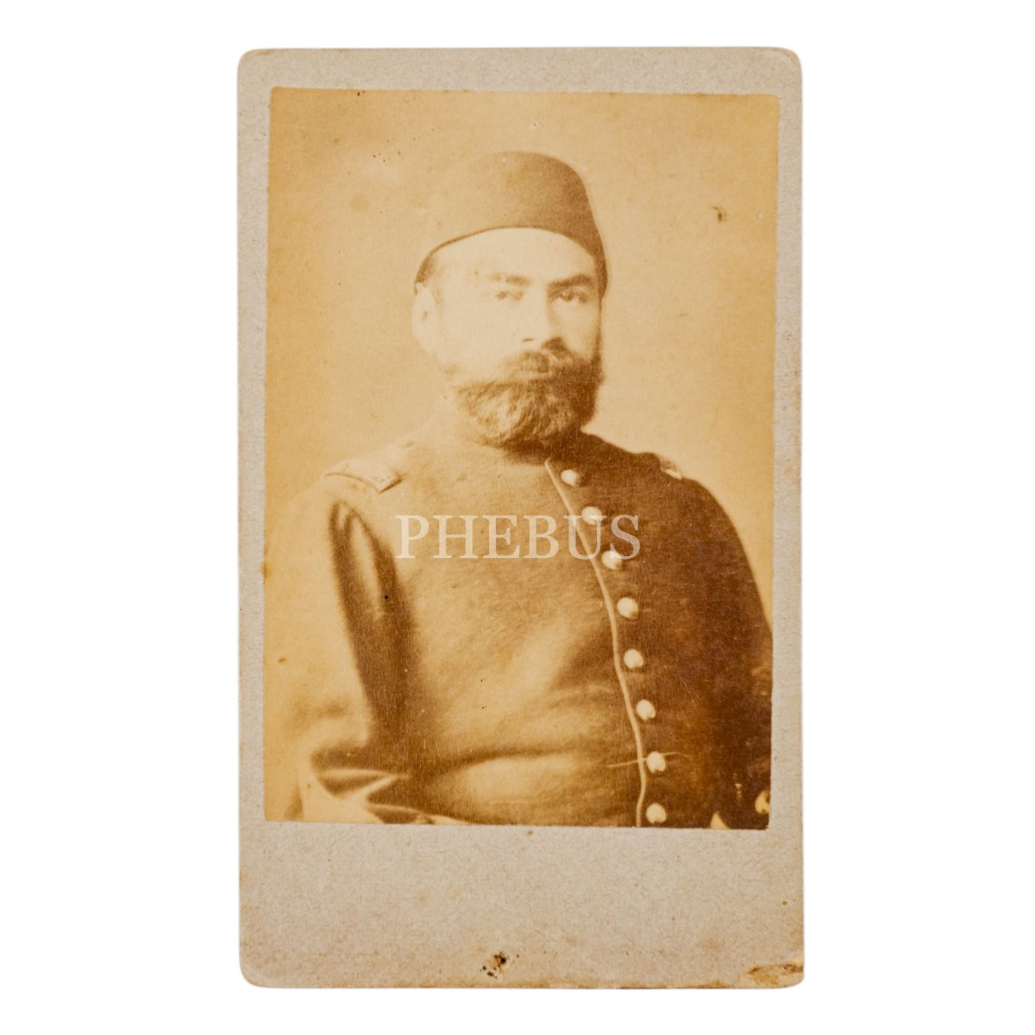 Sultan Mehmed Reşad döneminde kısa bir süre sadrazamlık da yapan asker, devlet adamı ve yazar Ahmed Muhtar Paşa´nın CDV (kartvizit) boy portre fotoğrafı, 6,5x10,5 cm...