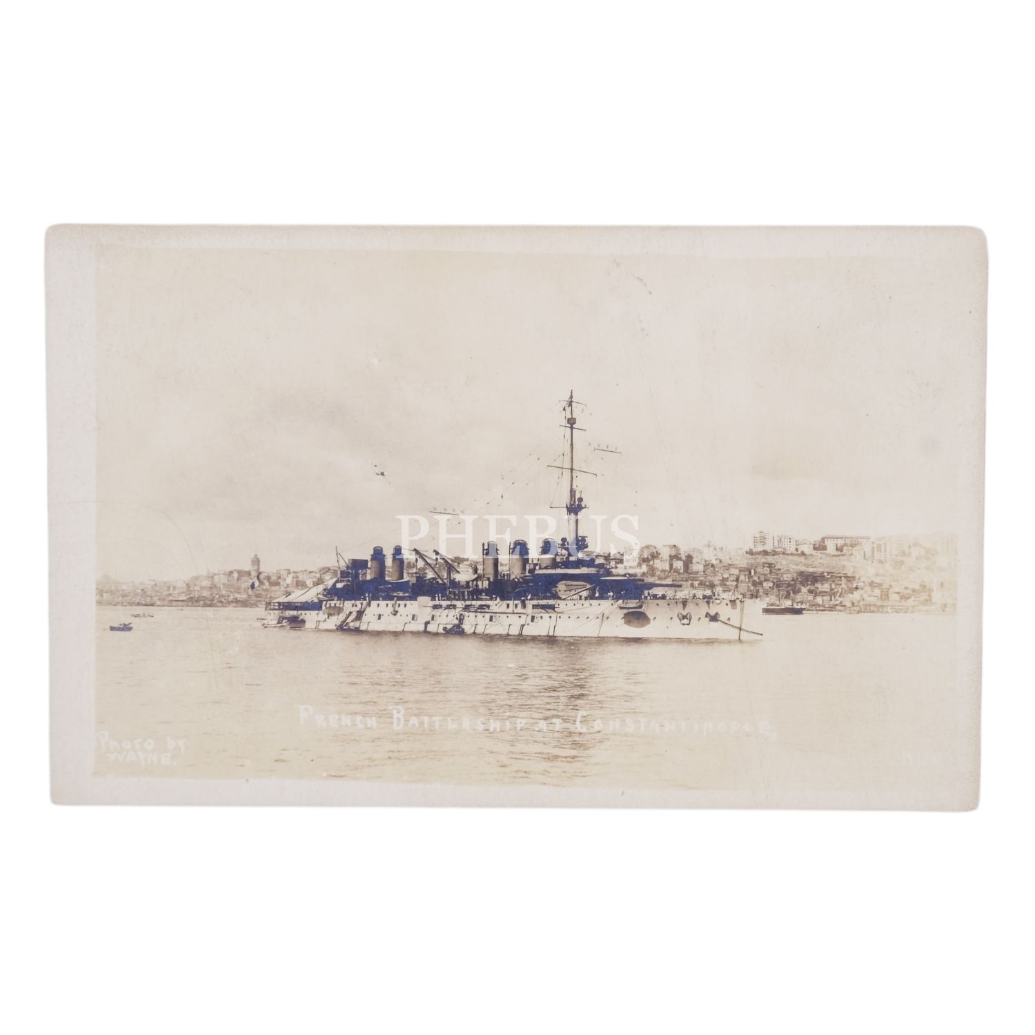 Boğaziçi´nde bir Fransız Savaş gemisi, "French Battleship at Constantinople - Photo by Wayne", 9x14 cm...