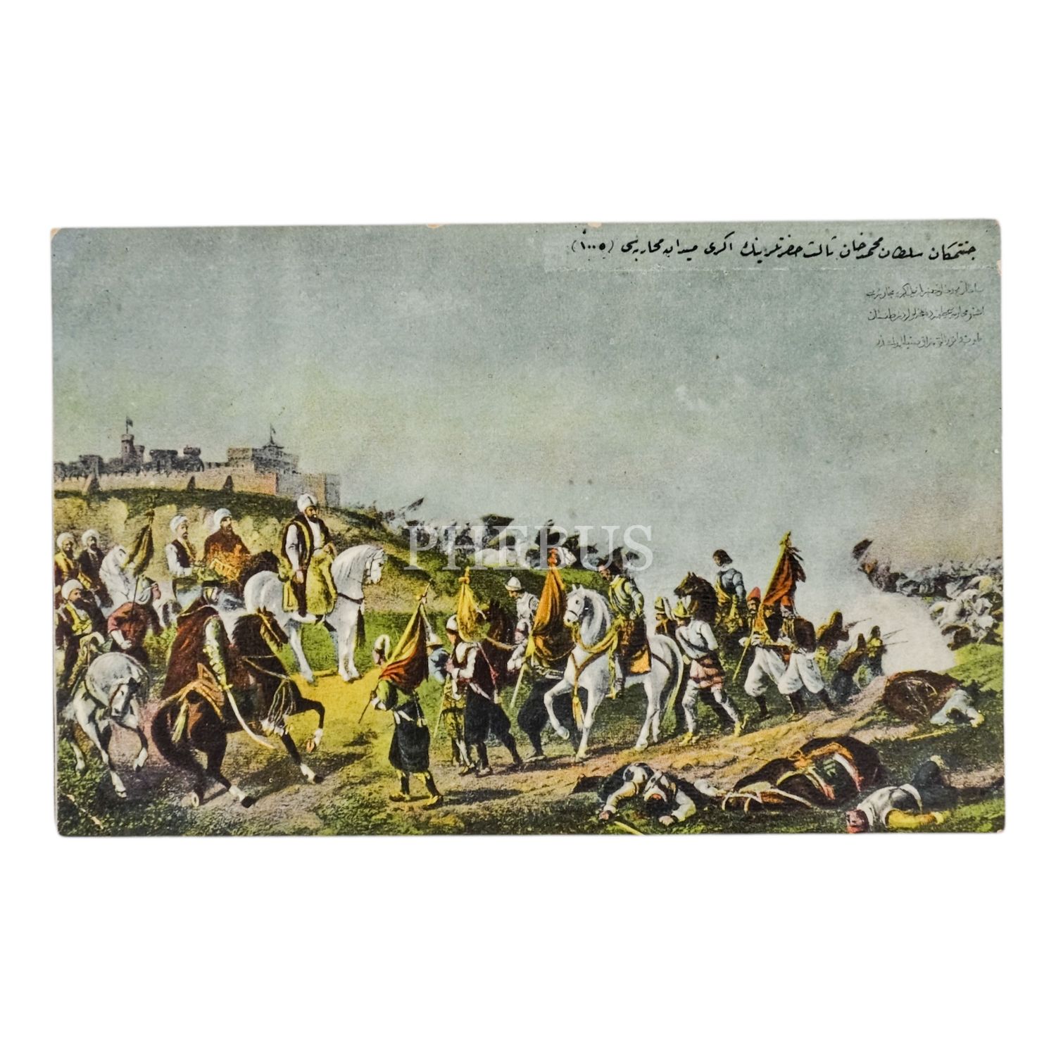 Eğrimeydan Savaşı´nın resmedildiği kartpostal, ed.: Max Fruchtermann, 14x9 cm...