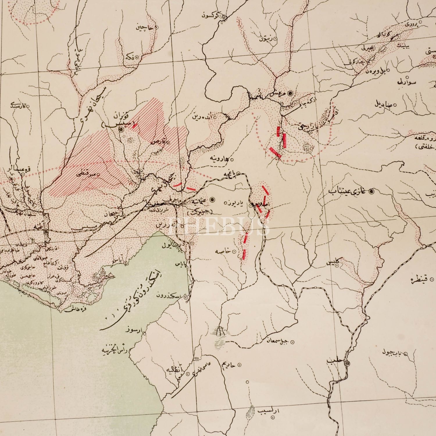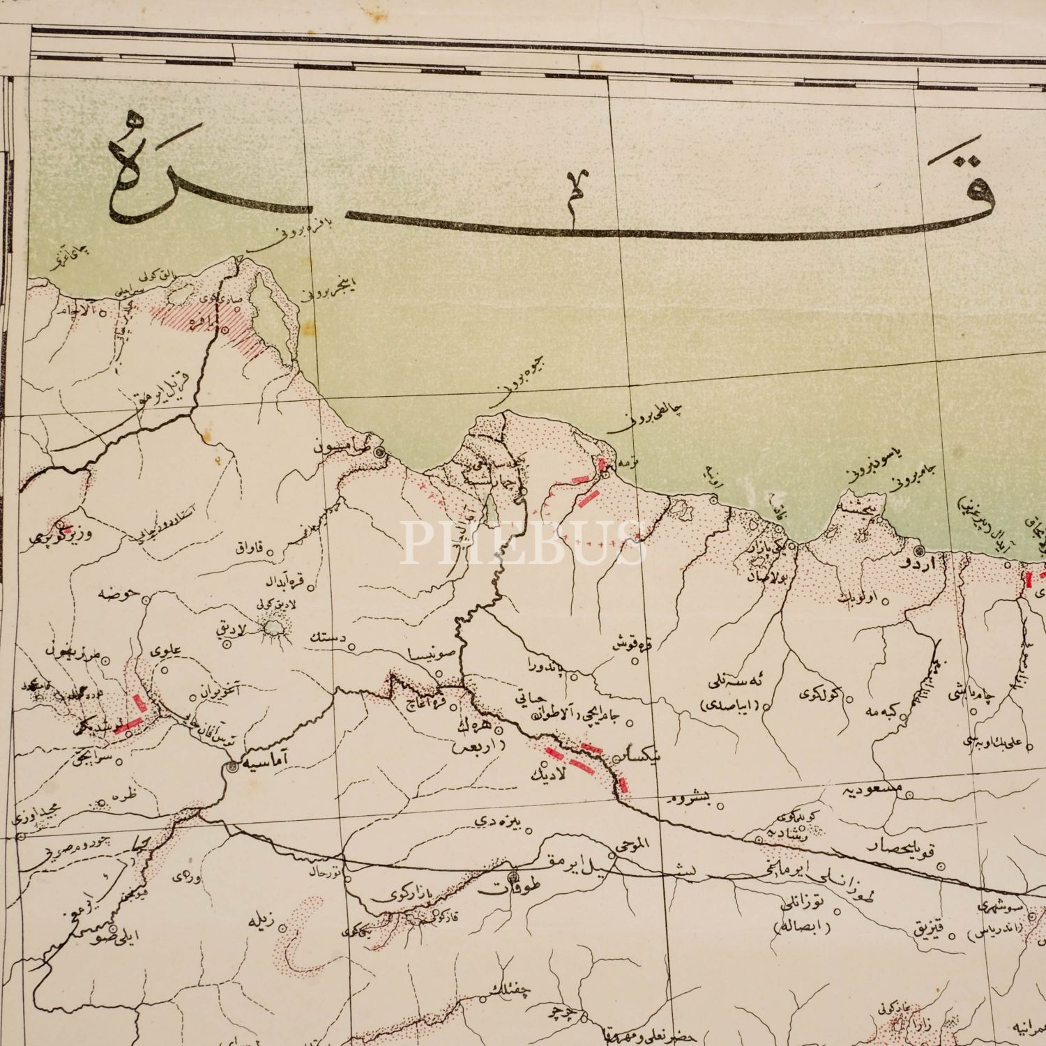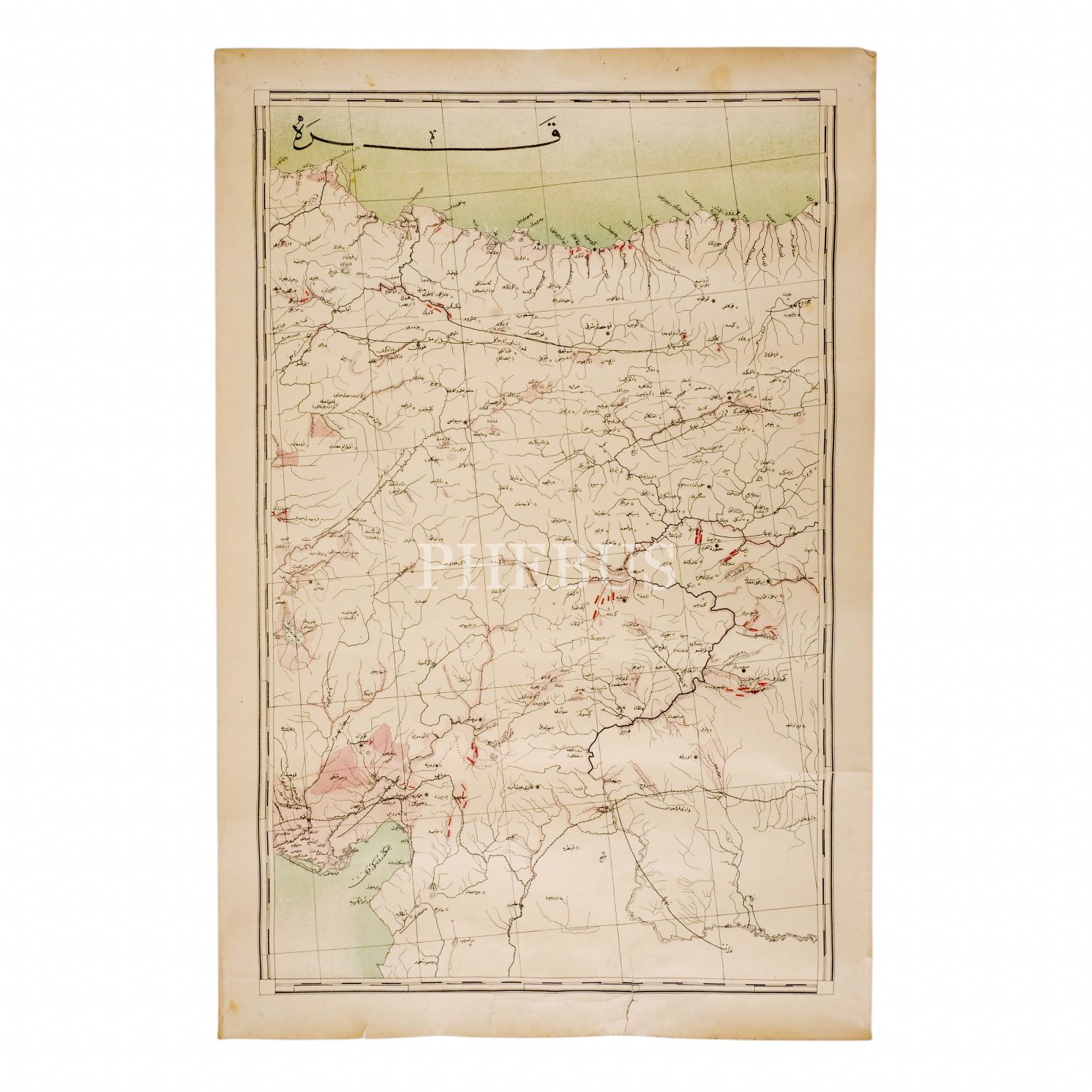 Karadeniz´in Ordu hizasından İskenderun körfezine uzanan bölgenin Osmanlıca haritası, 53x80 cm...