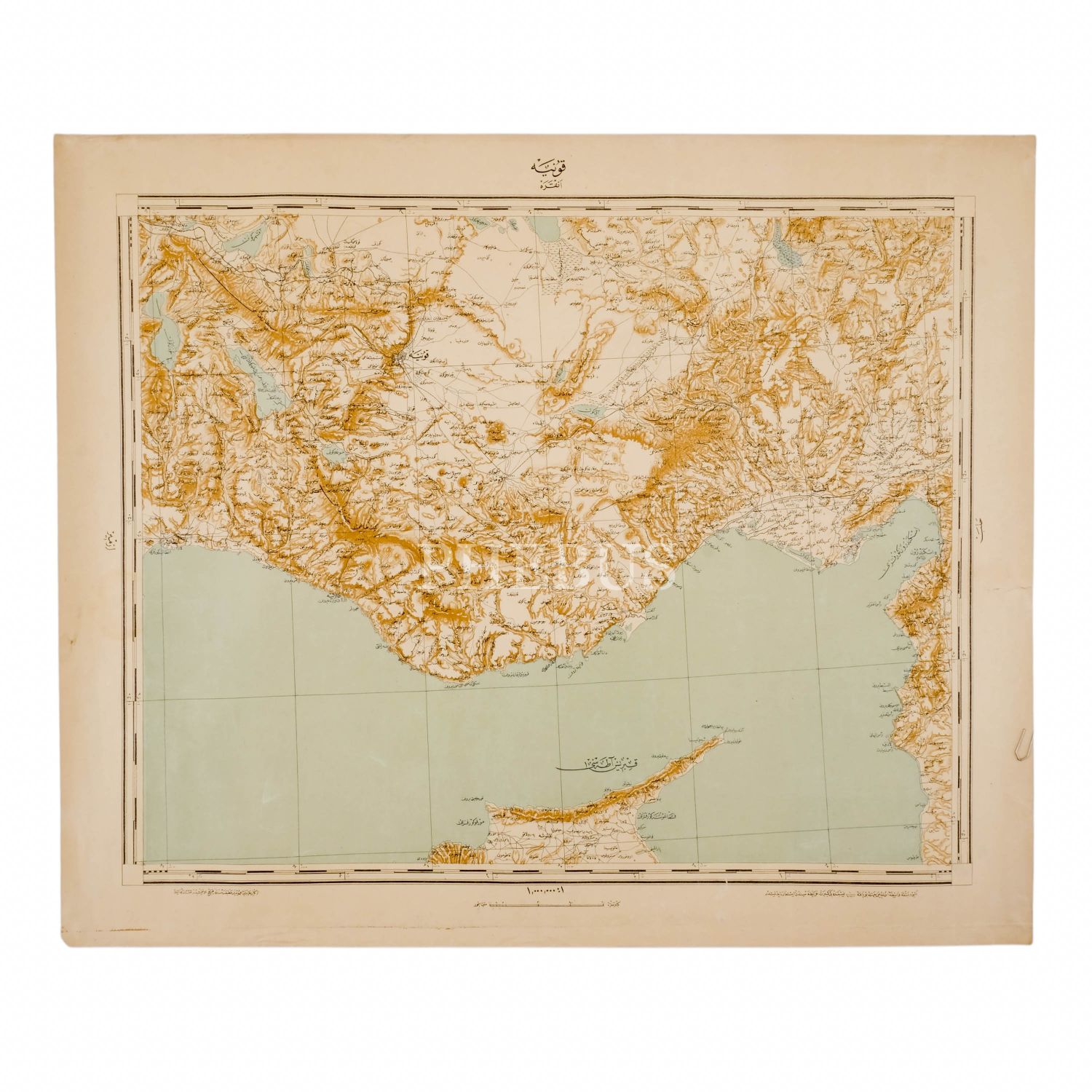 Erkan-ı Harb Harita Dairesi tarafından hazırlanan, Konya´dan Kıbrıs´a uzanan Osmanlıca harita, 1323, Harita Dairesi Matbaası, 50x60 cm...