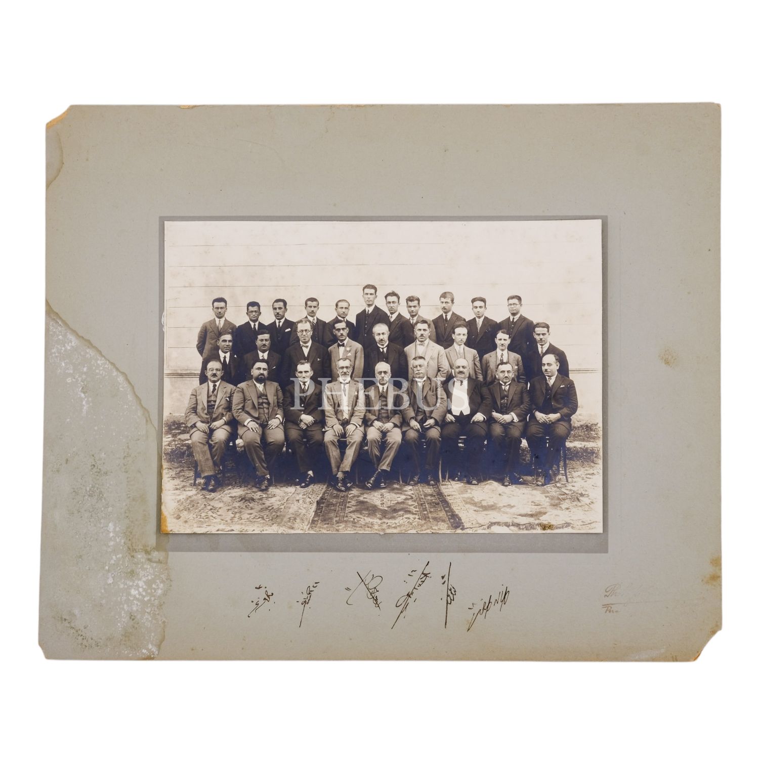 Ebül´ulâ Mardin, Fuat Köprülü, Ercüment Ekrem ve Ebubekir Hazım´ın da aralarında yer aldığı bir heyetin hatıra fotoğrafı, 36x30 cm...