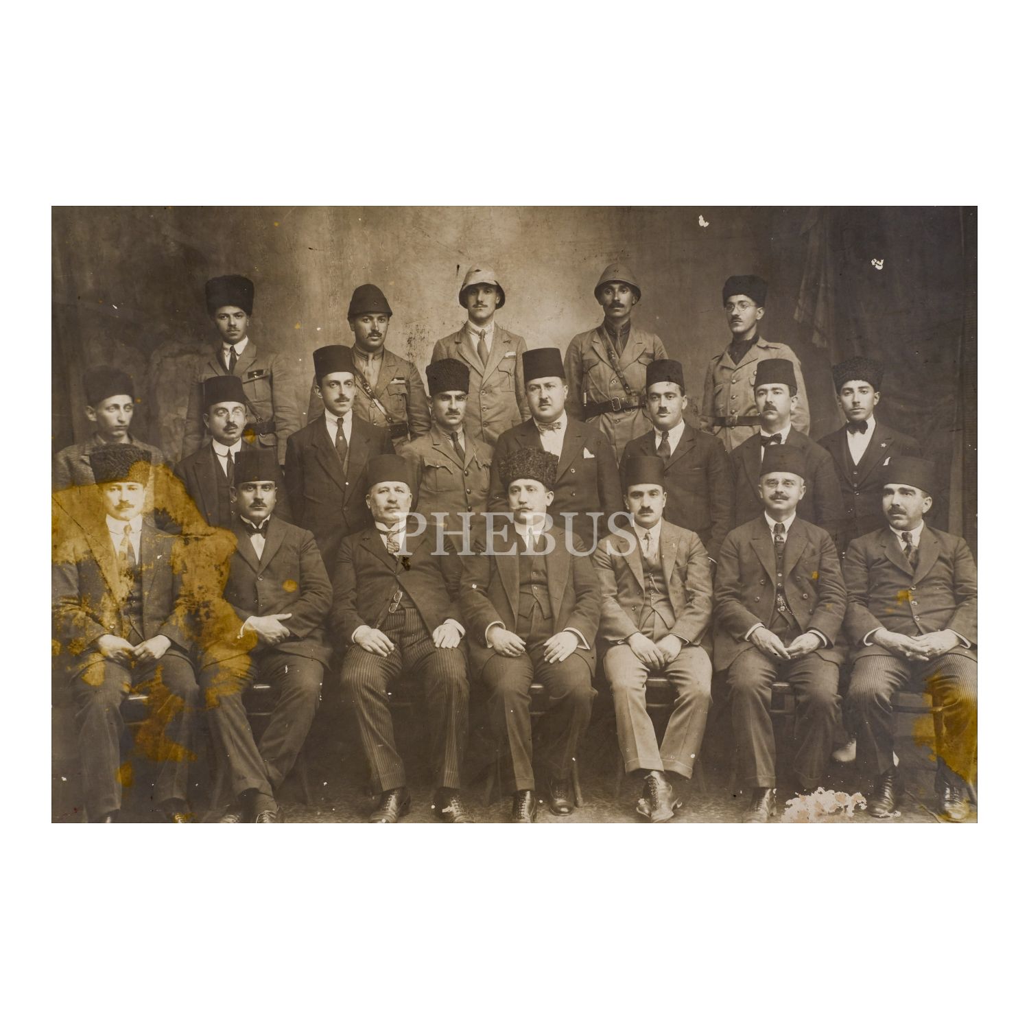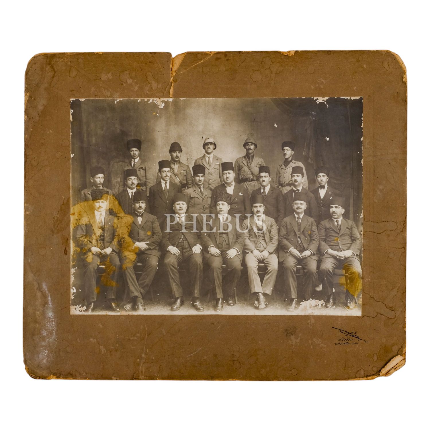 Asker ve sivillerden oluşan bir heyetin hatıra fotoğrafı, Resne Fotoğrafhanesi, fotoğraf 38x28 cm...