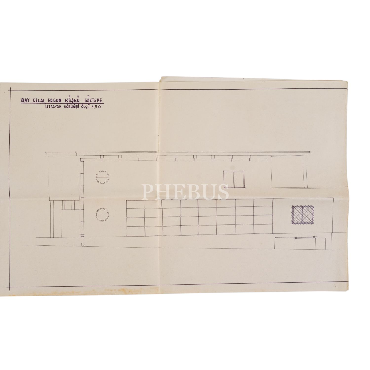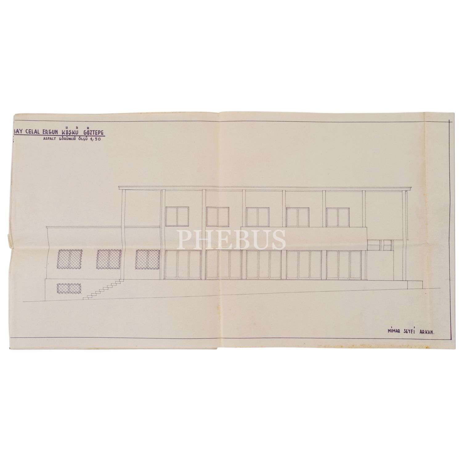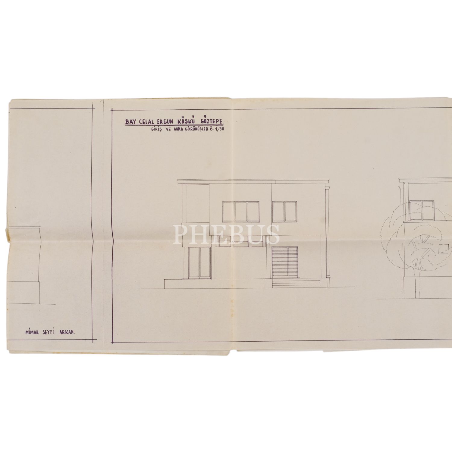İhtifalci Mehmed Ziya Bey´in oğlu Bay Celal Ergun´un Göztepe´de inşa ettirdiği köşkün, Atatürk´ün mimarı olarak tanınan, Florya Deniz Köşkü´nün de mimarı Seyfi Arkan tarafından yapılmış mimari çizimleri, 480x35 cm...
