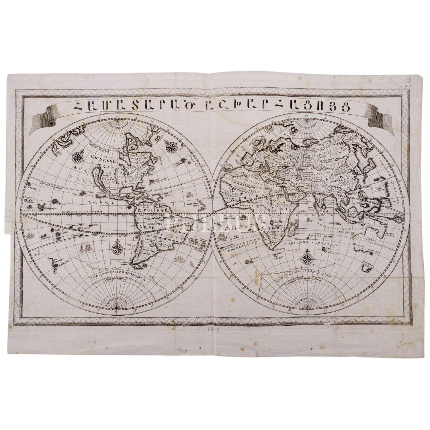 Taşbaskı Dünya haritası, Ermenice, 41x28 cm...