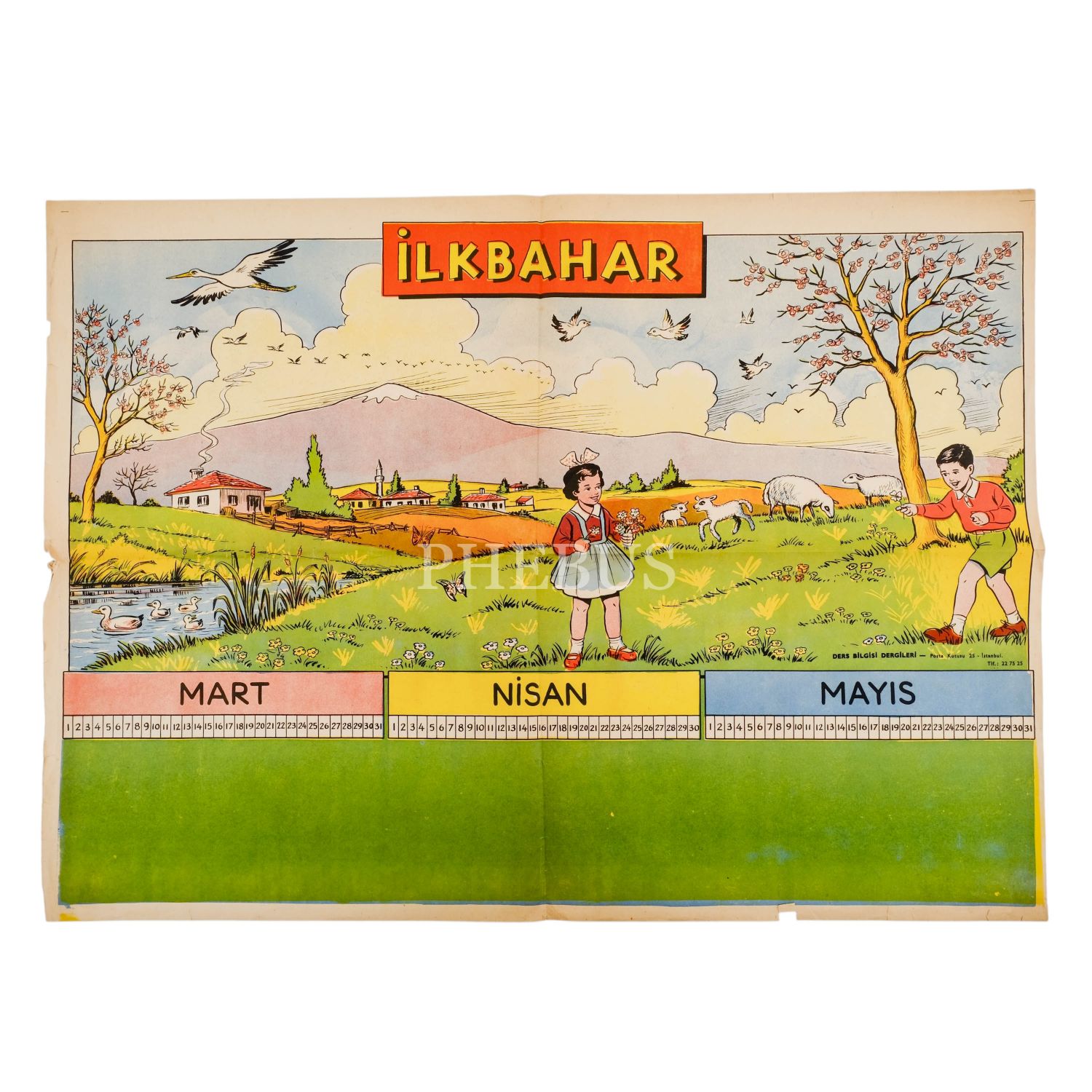 İlköğretim öğrencileri için hazırlanmış mevsimler afişlerinden "İlkbahar", Ders Bilgisi Dergileri, 68x50 cm...