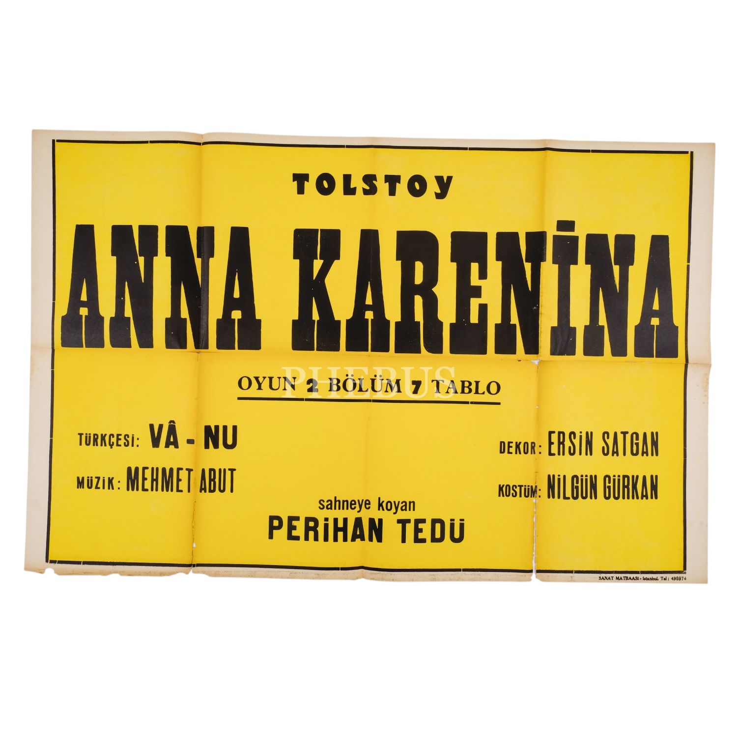 Anna Karenina, Eser: Tolstoy, Sahneye koyan: Perihan Tedü, Türkçesi: Vâ-Nu, Dekor: Ersin Satgan, Kostüm: Nilgün Gürkan, Müzik: Mehmet Abut, 100x65 cm...