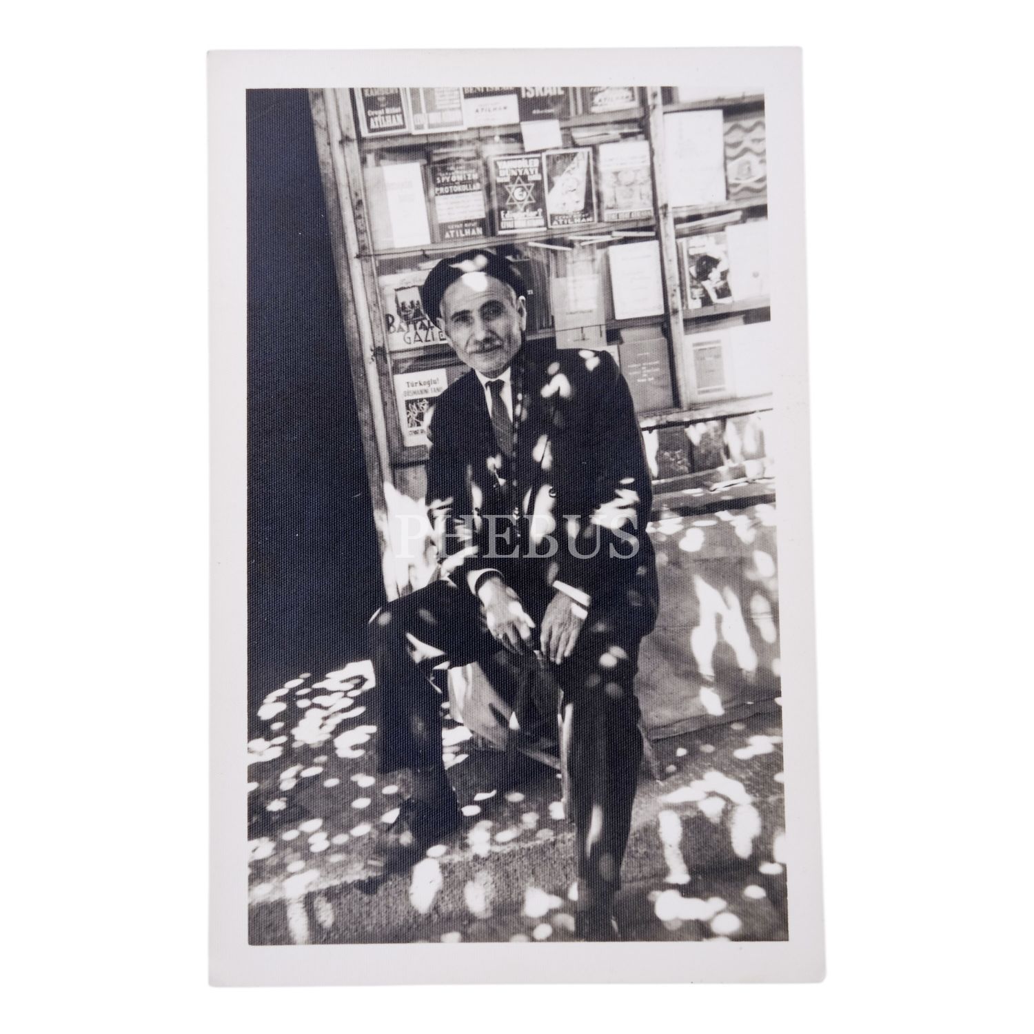 Sahaflar Çarşısı´nın kıdemli sahaflarından Ali Üşük´ün, 1970 yılında, dükkanı önünde çekilmiş bir fotoğrafı, 9x14 cm...