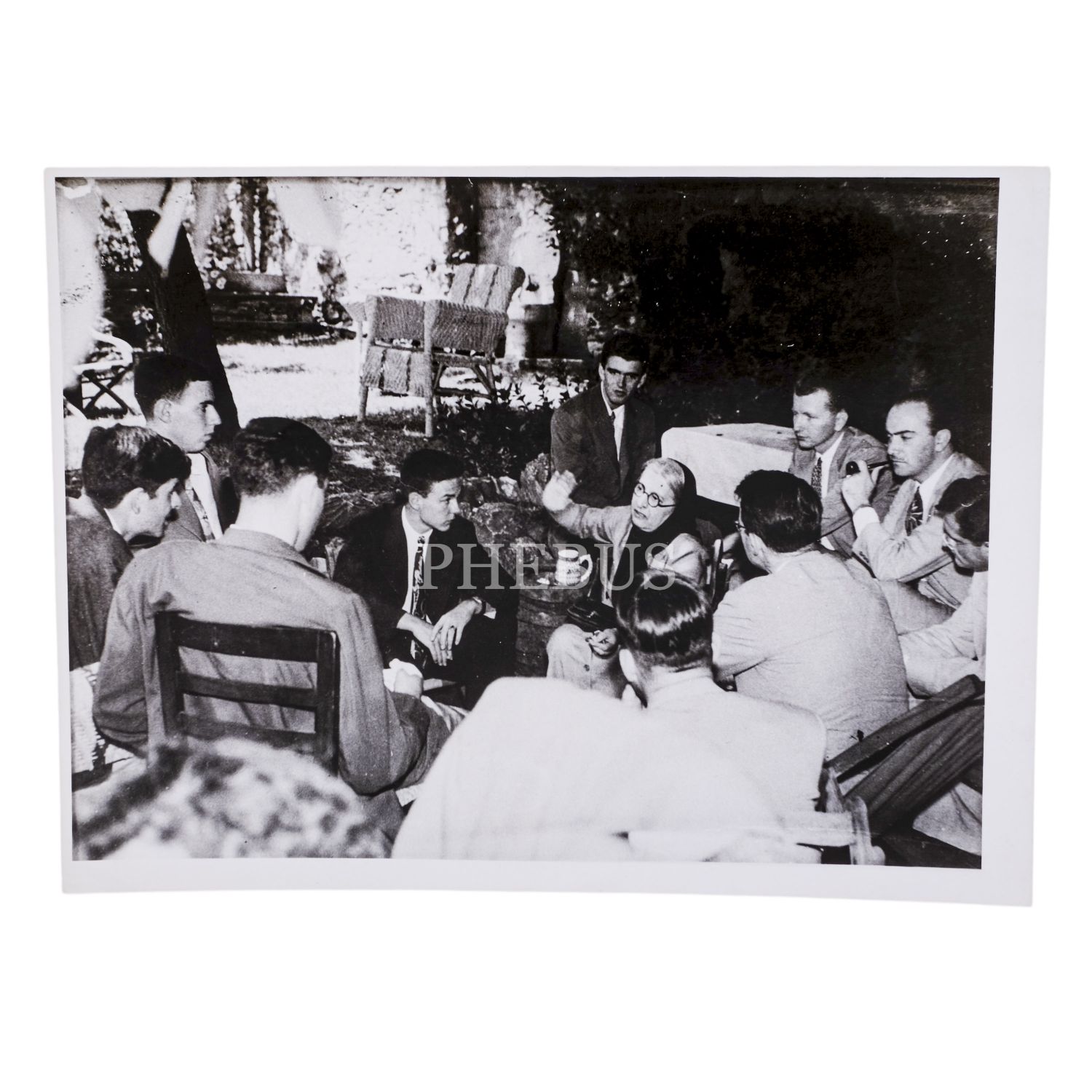 Halide Edip Adıvar, yaşlılık yıllarında, kendisinin birikiminden istifade etmek için etrafını sarmış gençlerle birlikte sohbet halinde, 24x18 cm...