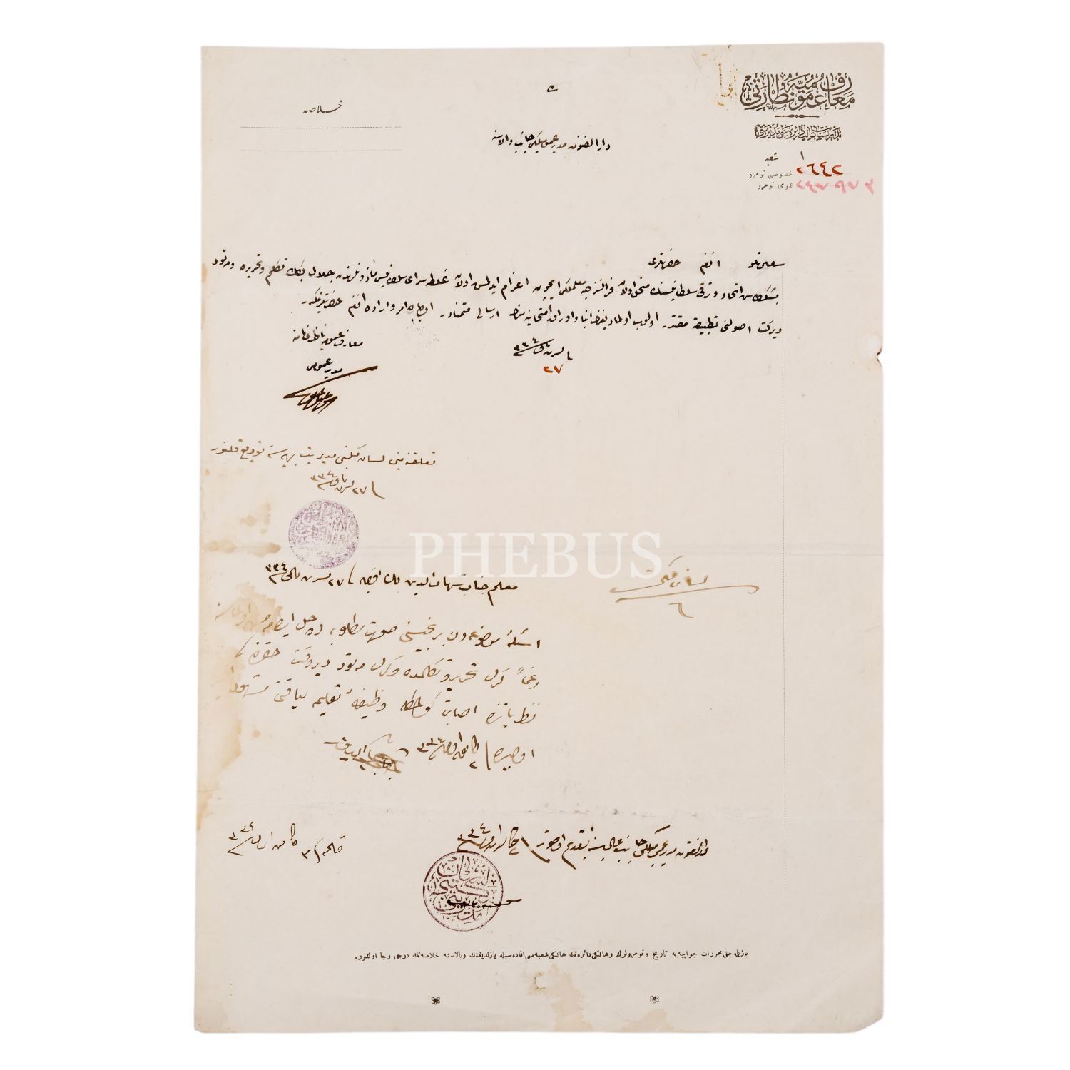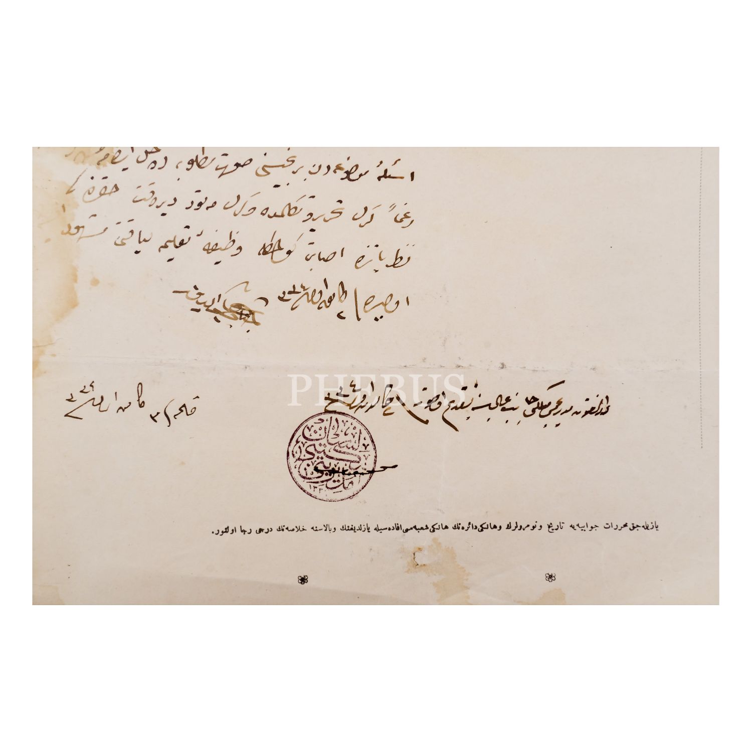 Beşiktaş İttihat ve Terakki Mektebi´ne Fransızca muallimi olarak atanacak bir öğretmenin, Lisan Mektebi muallimlerinden Cenap Şehabettin tarafından sınav edilmesi istenmektedir. Dilekçeye cevaben