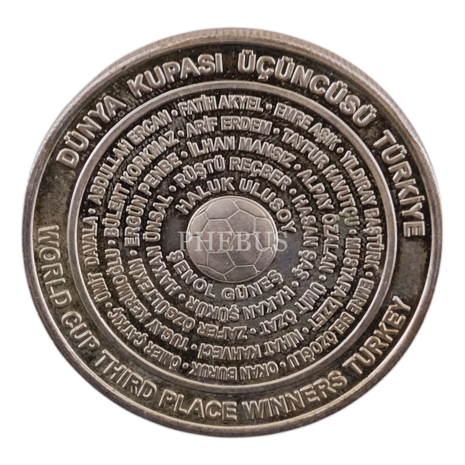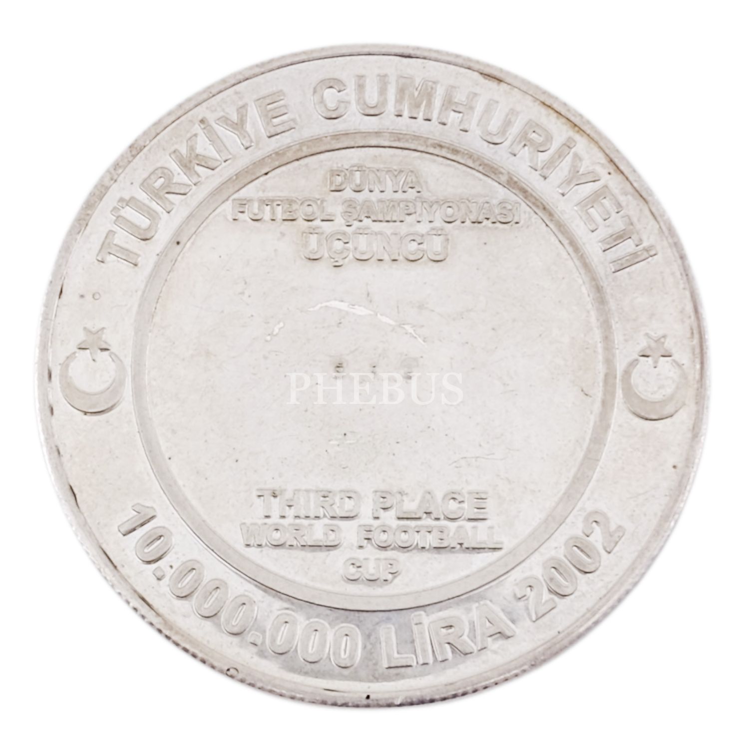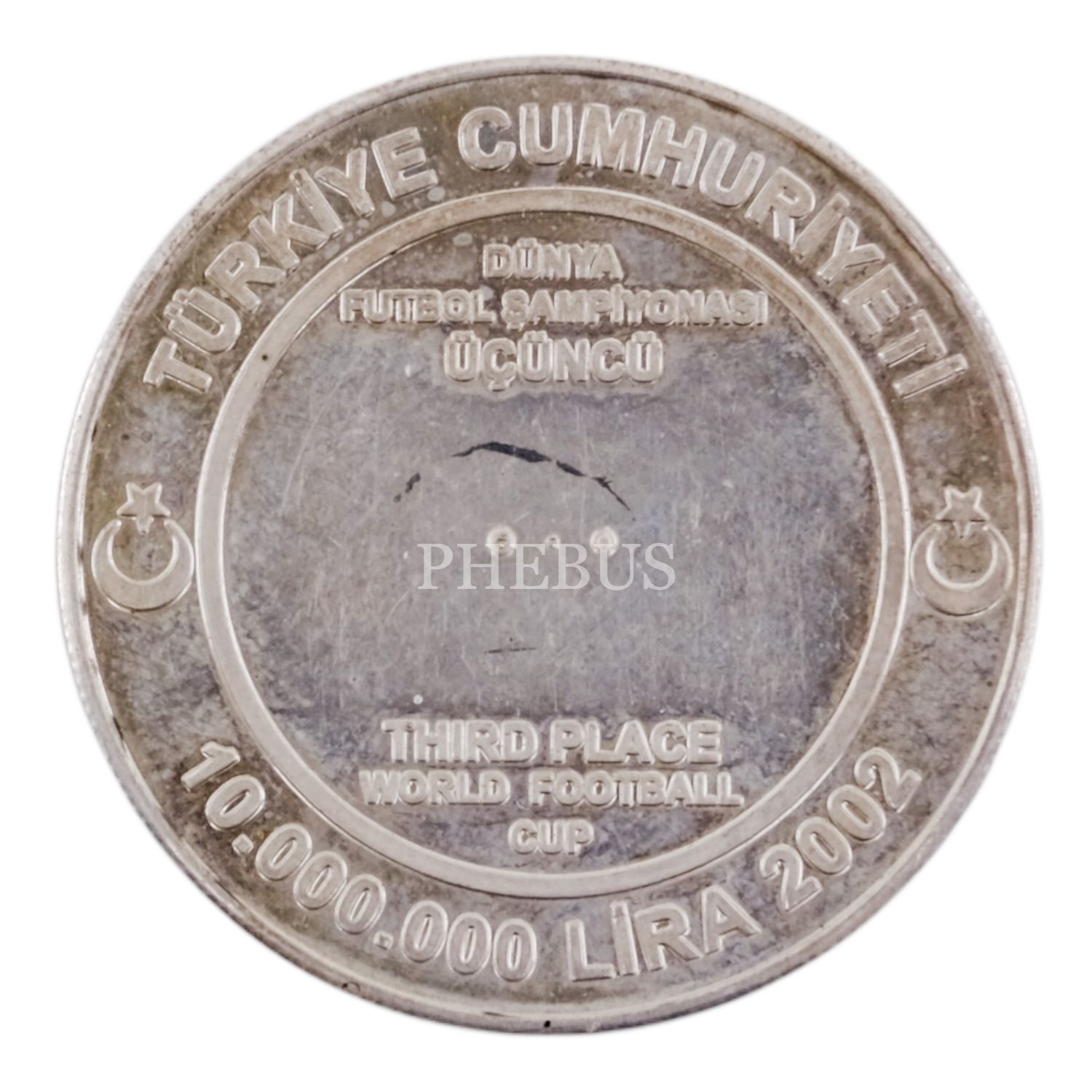 "Dünya Kupası Üçüncüsü Türkiye" 10.000.000 Lira, 2002, 0.925 gümüş, 31,47 gr, çap 4 cm...