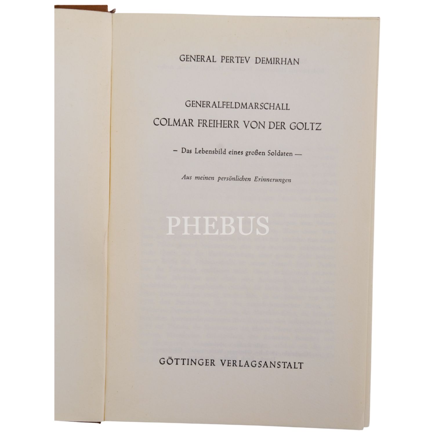 GENERALFELDMARSCHALL COLMAR FREIHERR VON DER GOLTZ, General Pertev Demirhan, 1960, Göttinger Verlagsanstalt, 238 sayfa, 14x20 cm...