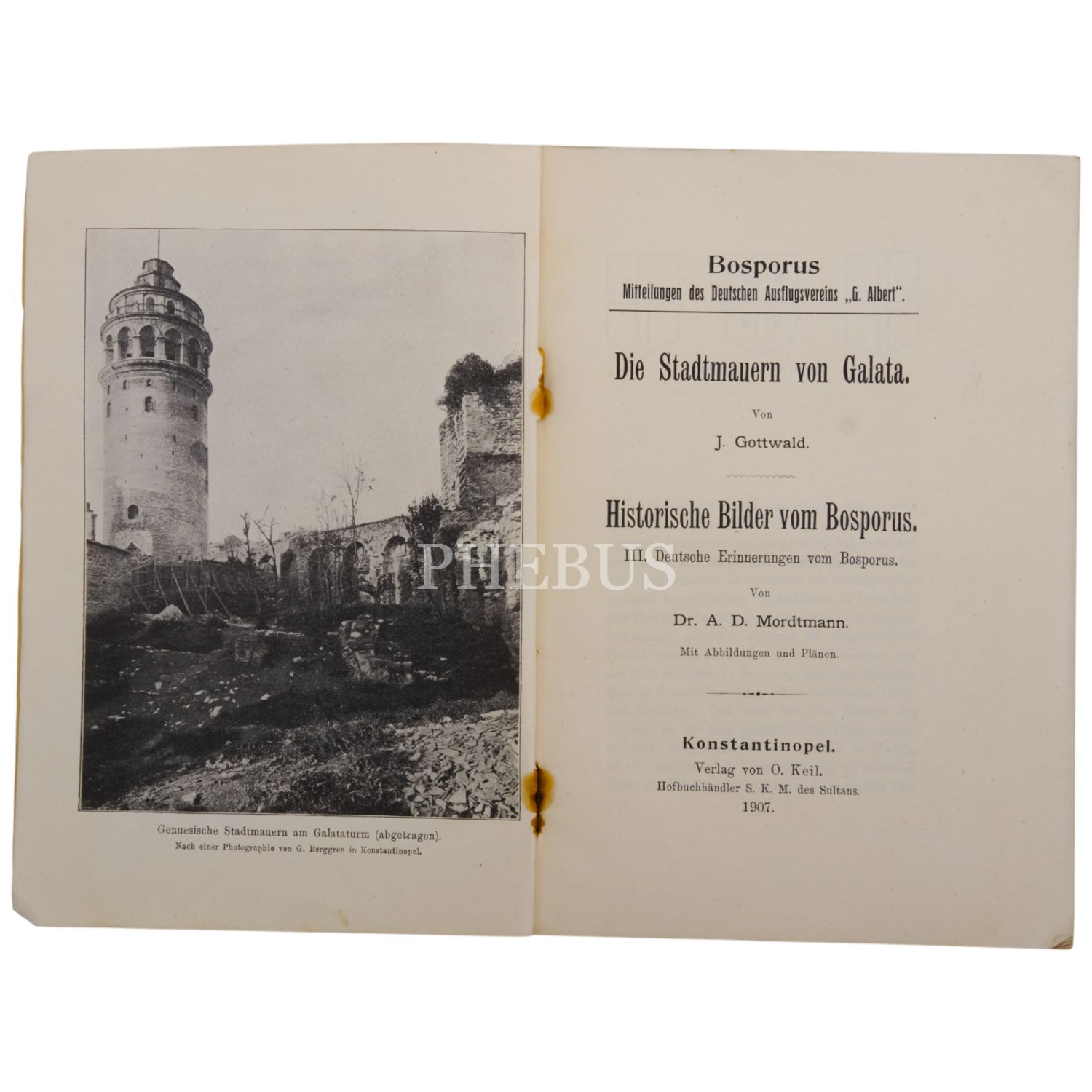 DIE STADTMAUERN VON GALATA (J. Gottwald) & HISTORISCHE BILDER VOM BOSPORUS (A. D. Mordtmann), 1907, Verlag von O. (Otto) Keil, Konstantinopel, 108 sayfa, 14x20 cm...
