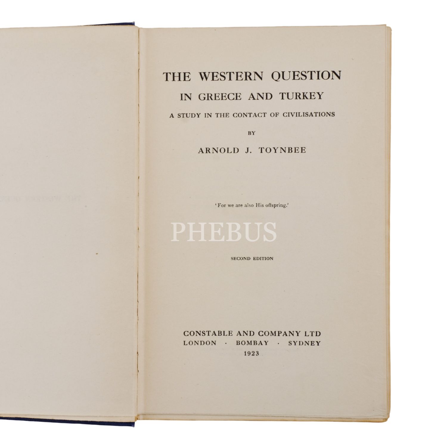THE WESTERN QUESTION IN GREECE AND TURKEY (A Study in The Contact of Civilisations), Arnold J. Toynbee, 1923, Constable and Company Ltd. Edinburgh, 408 sayfa, 15x23 cm...