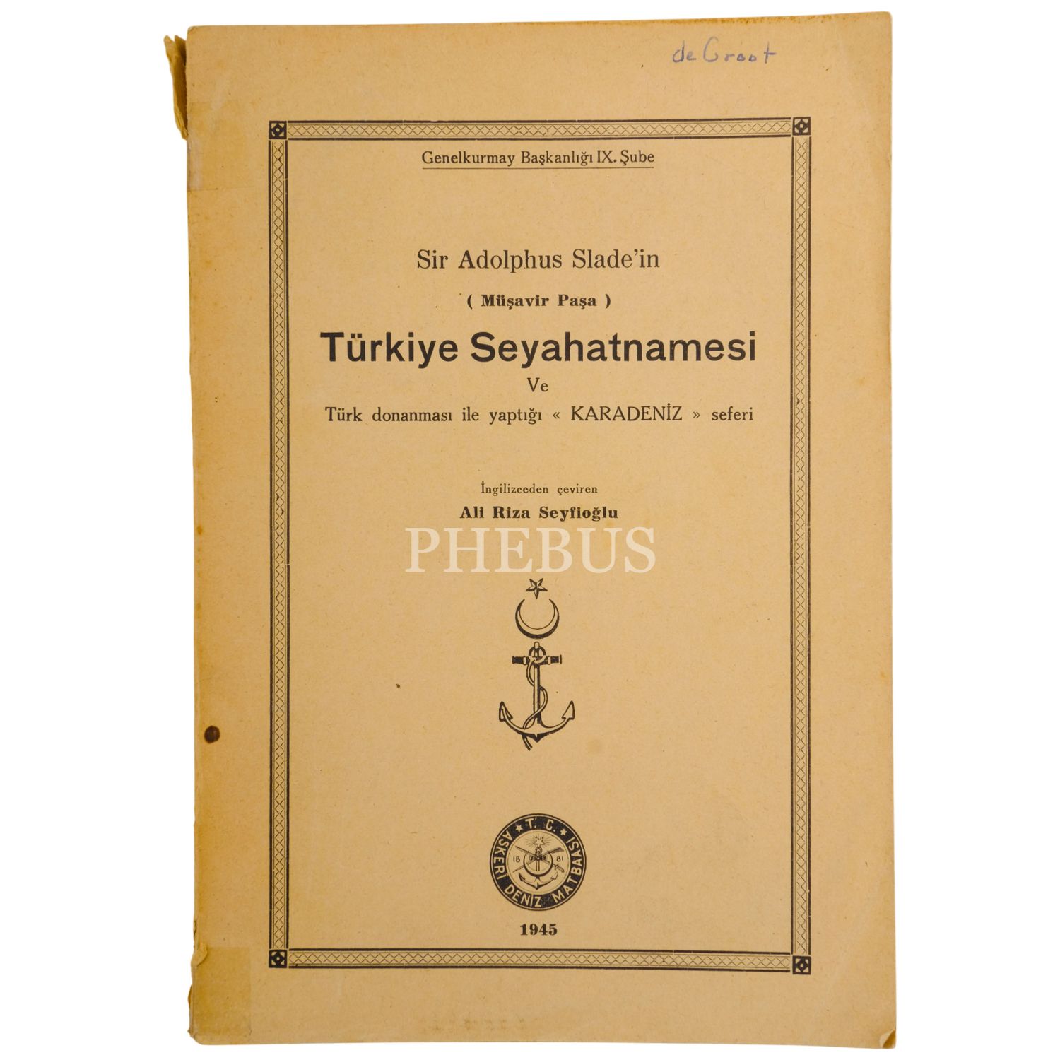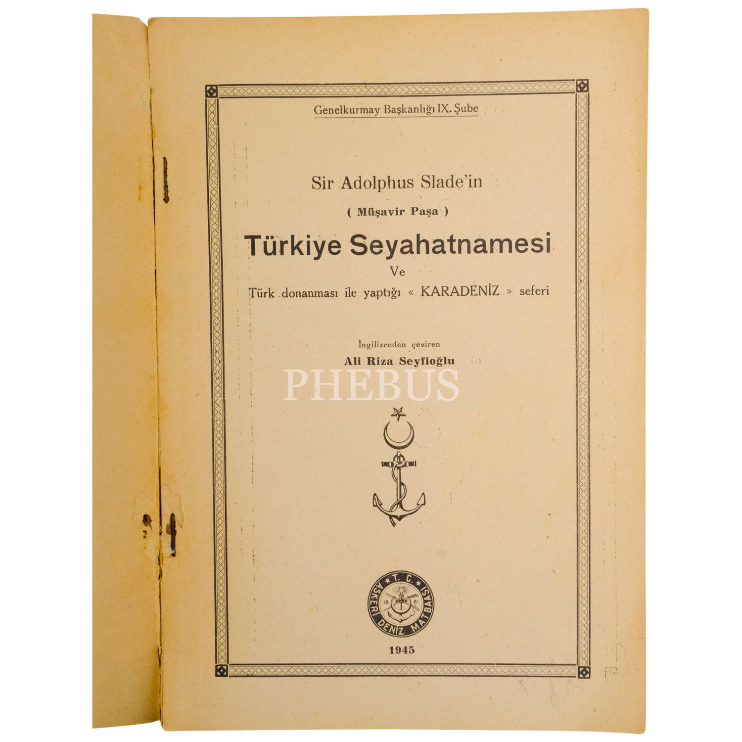 SİR ADOLPHUS SLADE´İN (MÜŞAVİR PAŞA) TÜRKİYE SEYAHATNAMESİ VE TÜRK DONANMASI İLE YAPTIĞI KARADENİZ SEFERİ, (İngilizceden çeviren: Ali Rıza Seyfioğlu), 1945, T.C. Askeri Deniz Matbaası, 229 sayfa, 17x24 cm...
