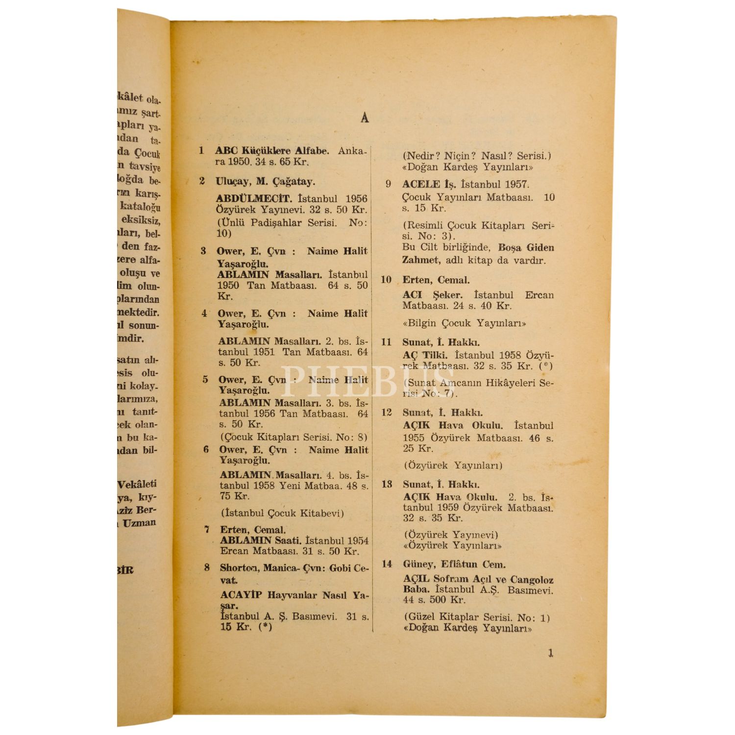 TÜRKİYE ÇOCUK KİTAPLARI KATALOĞU, Mediha Yurttabir, 1960, Ege Matbaası, 177 sayfa, 17x25 cm...