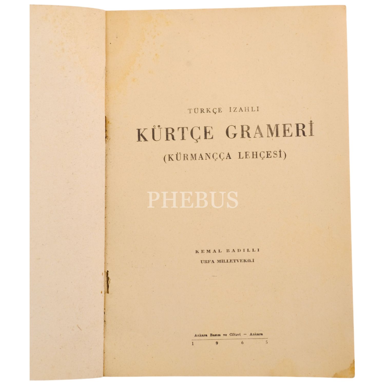 TÜRKÇE İZAHLI KÜRTÇE GRAMERİ (Kürmançça Lehçesi), Kemal Badıllı, 1965, Ankara Basım ve Ciltevi, 160 sayfa, 17x24 cm...