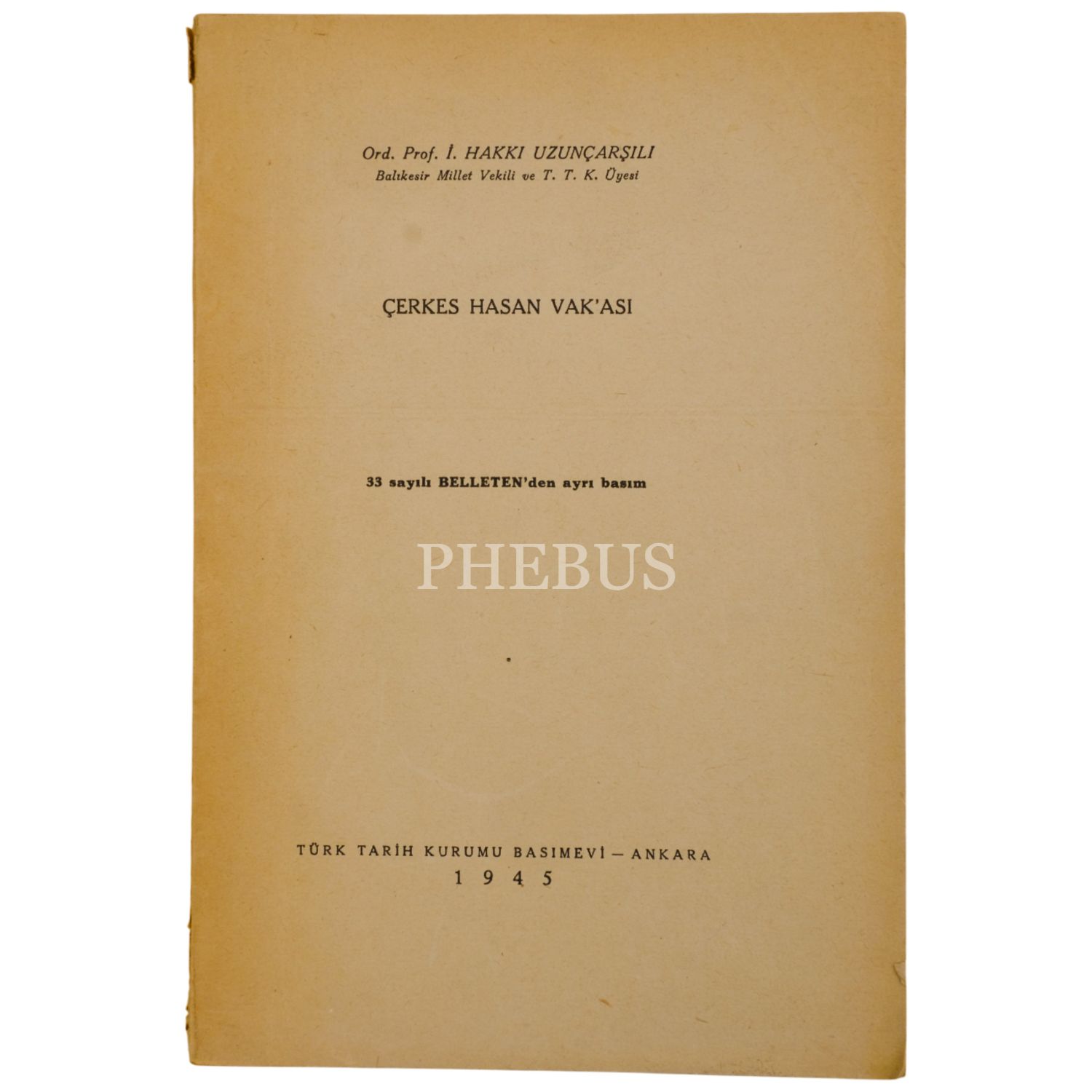 ÇERKES HASAN VAK´ASI (33 sayılı Belleten´den ayrı basım), İ. Hakkı Uzunçarşılı, 1945, Türk Tarih Kurumu Basımevi, 43 sayfa, 16x24 cm...