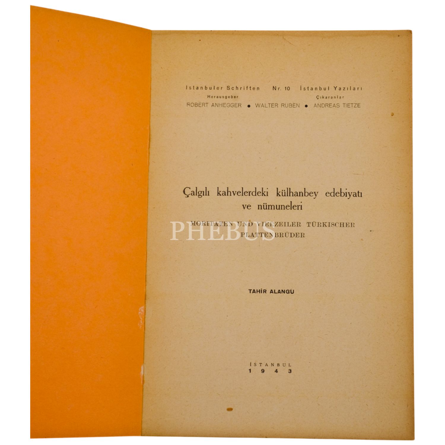 ÇALGILI KAHVELERDEKİ KÜLHANBEY EDEBİYATI VE NÜMUNELERİ, Tahir Alangu, 1943, İstanbul Yazıları Nr. 10, Ahmet İhsan Matbaası, 60 sayfa, 15x23 cm...