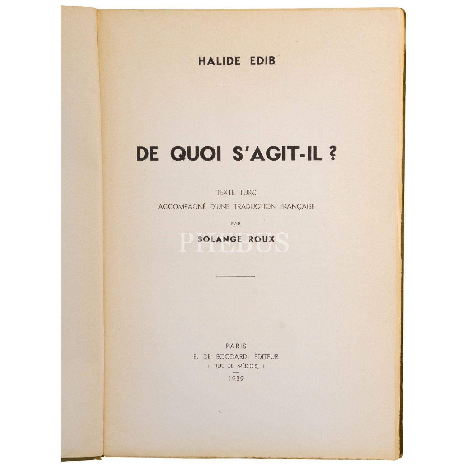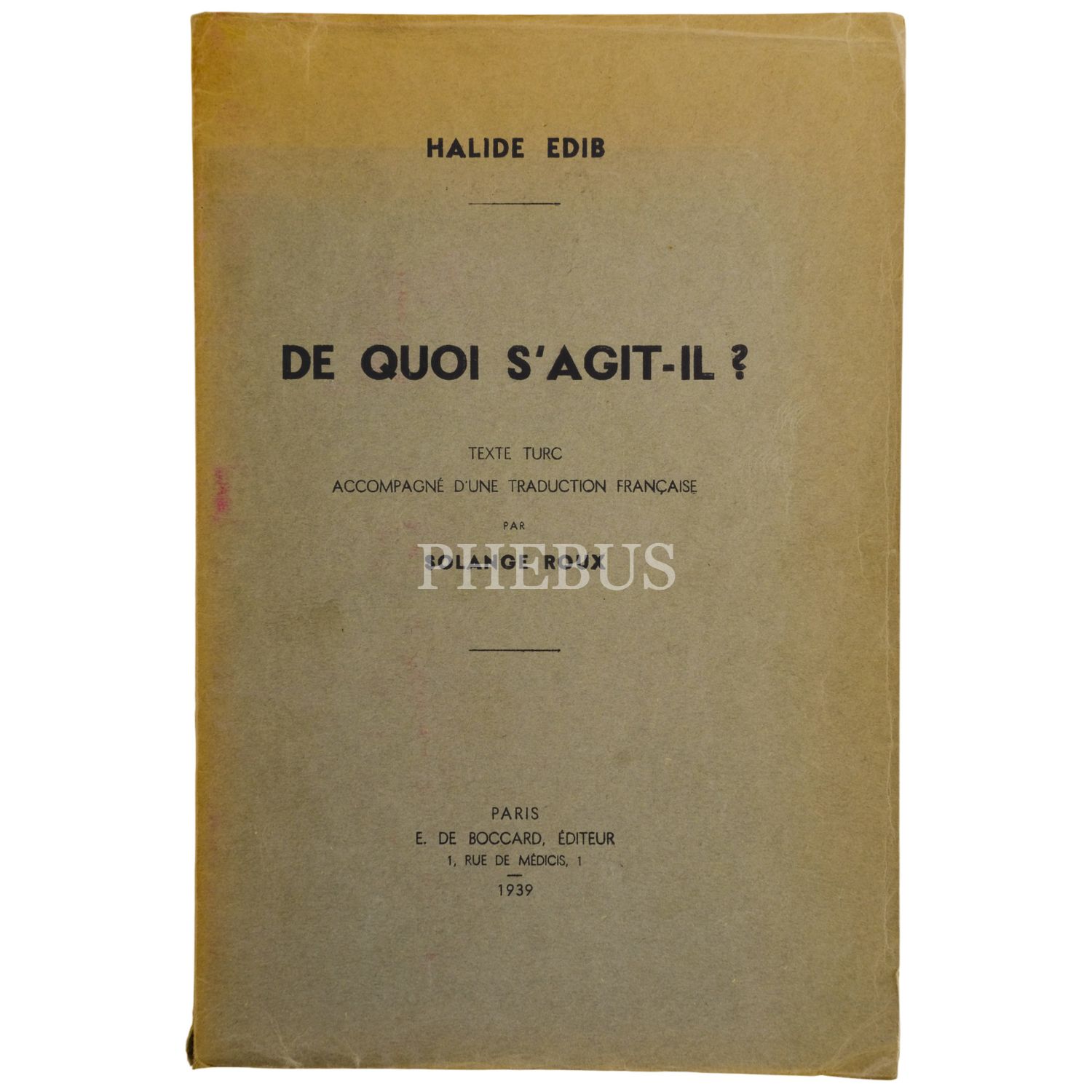 DE QUOI S´AGIT-IL, Halide Edib, (Texte Turc Accompagne D´une Traduction Française Par Solange Roux, 1939, E. De Boccard, Editeur, Paris, 71 sayfa, 17x25 cm...