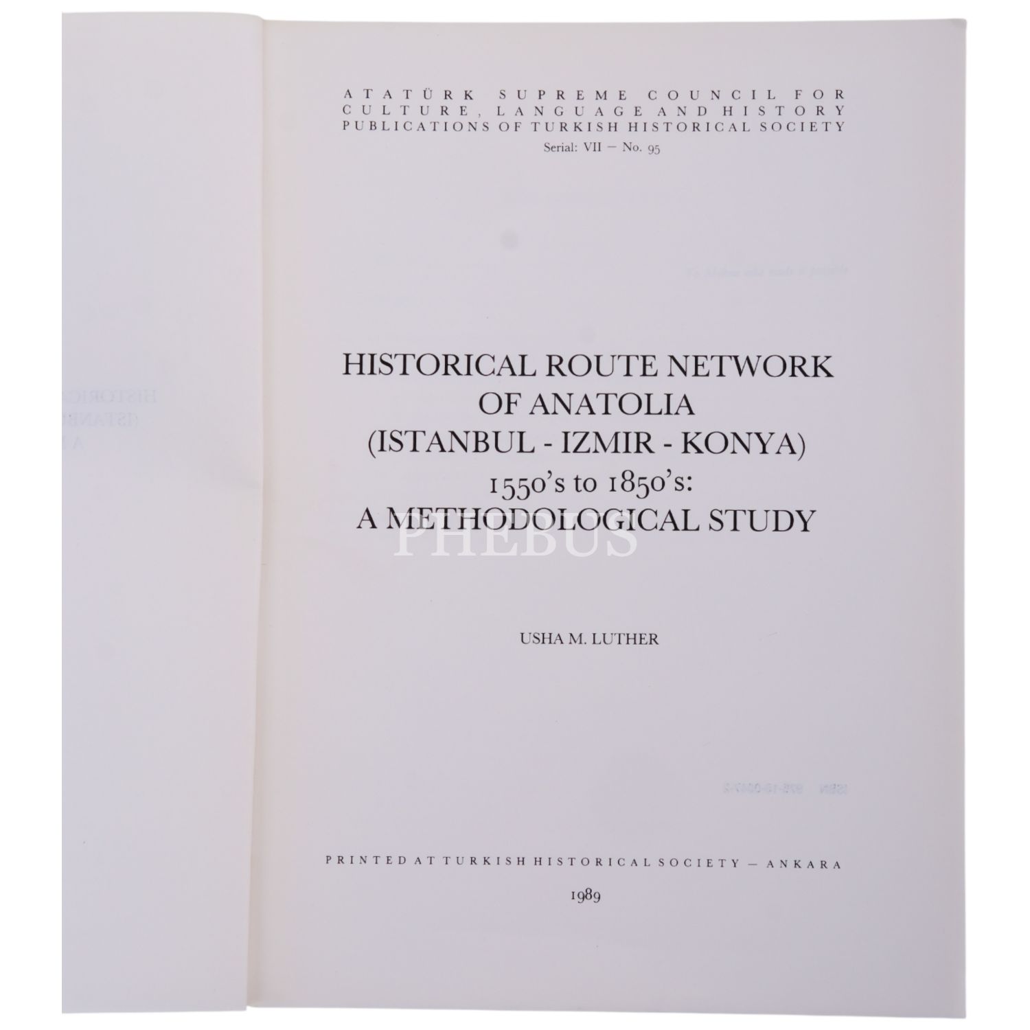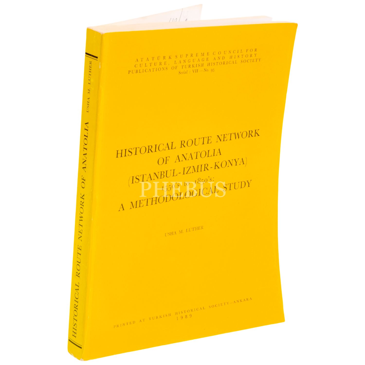 HISTORICAL ROUTE NETWORK OF ANATOLIA (ISTANBUL - IZMIR - KONYA), 155-´s to 1850´s: A METHODOLOGİCAL STUDY, Usha M. Luther, 1989, Printed At Turkısh Hıstorıcal Society, 300 sayfa, 20x27 cm..