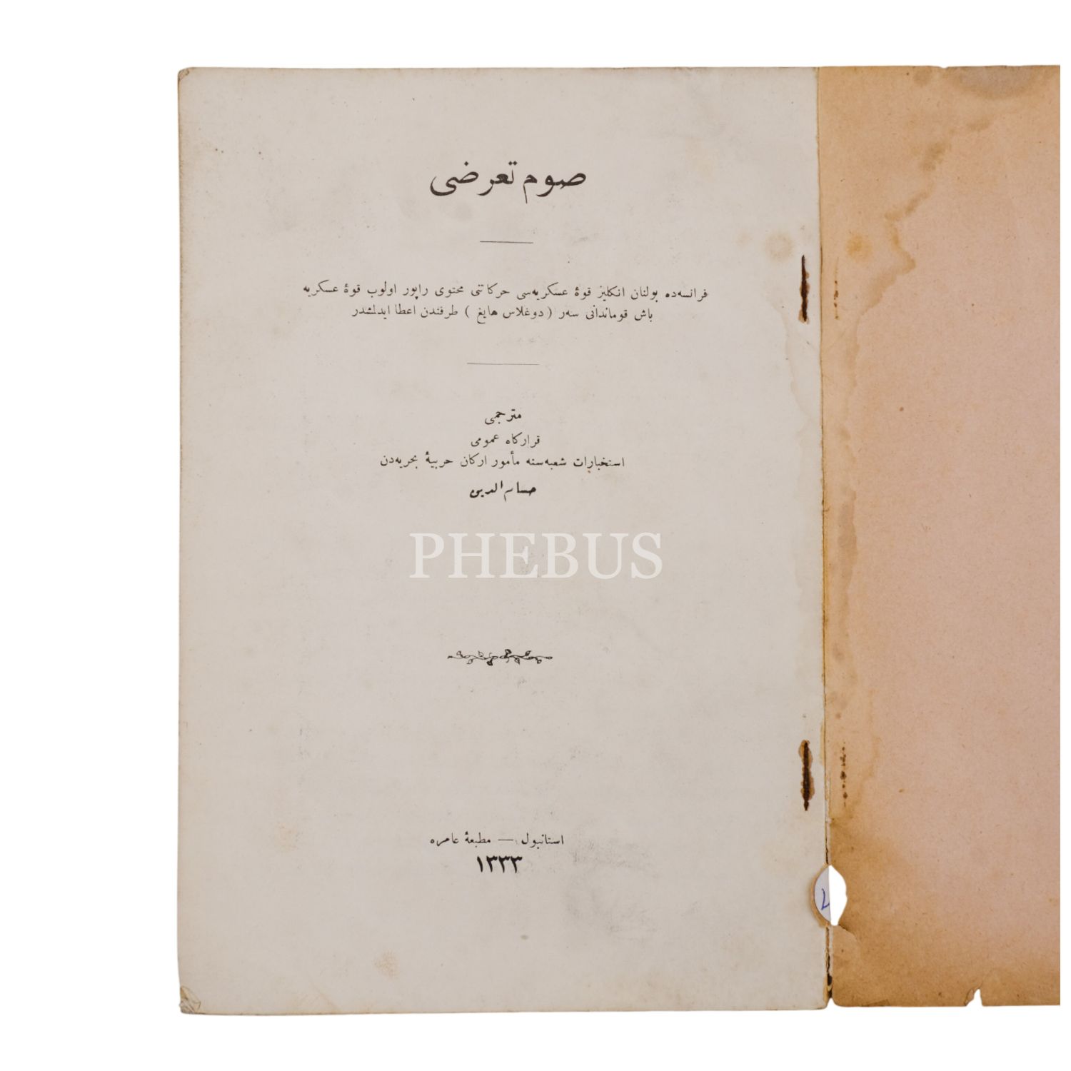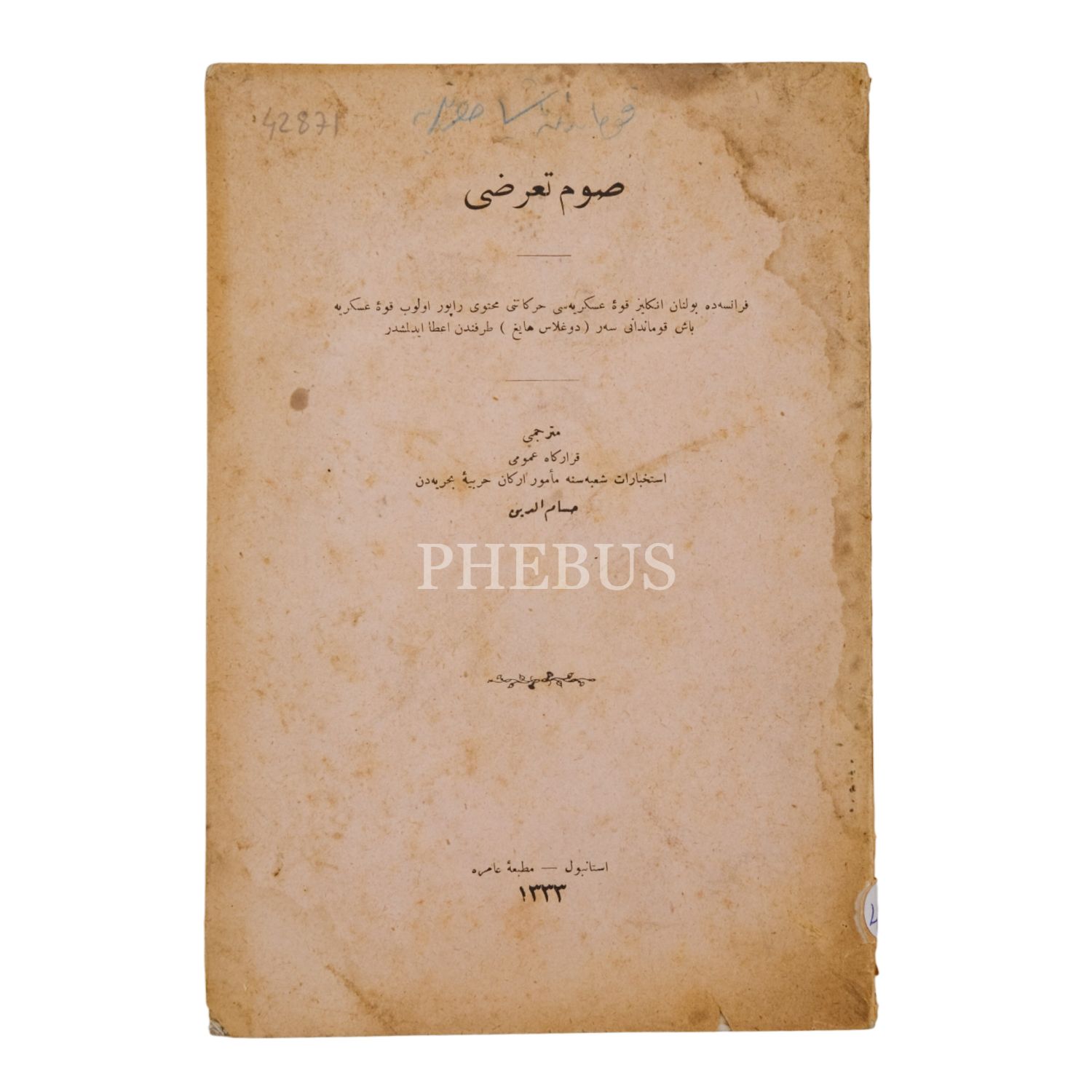 SOM TAARRUZU, Haig Douglas, (çeviren: Hüsameddin), 1333, Matbaa-i Amire, 56 sayfa, 16x24 cm...