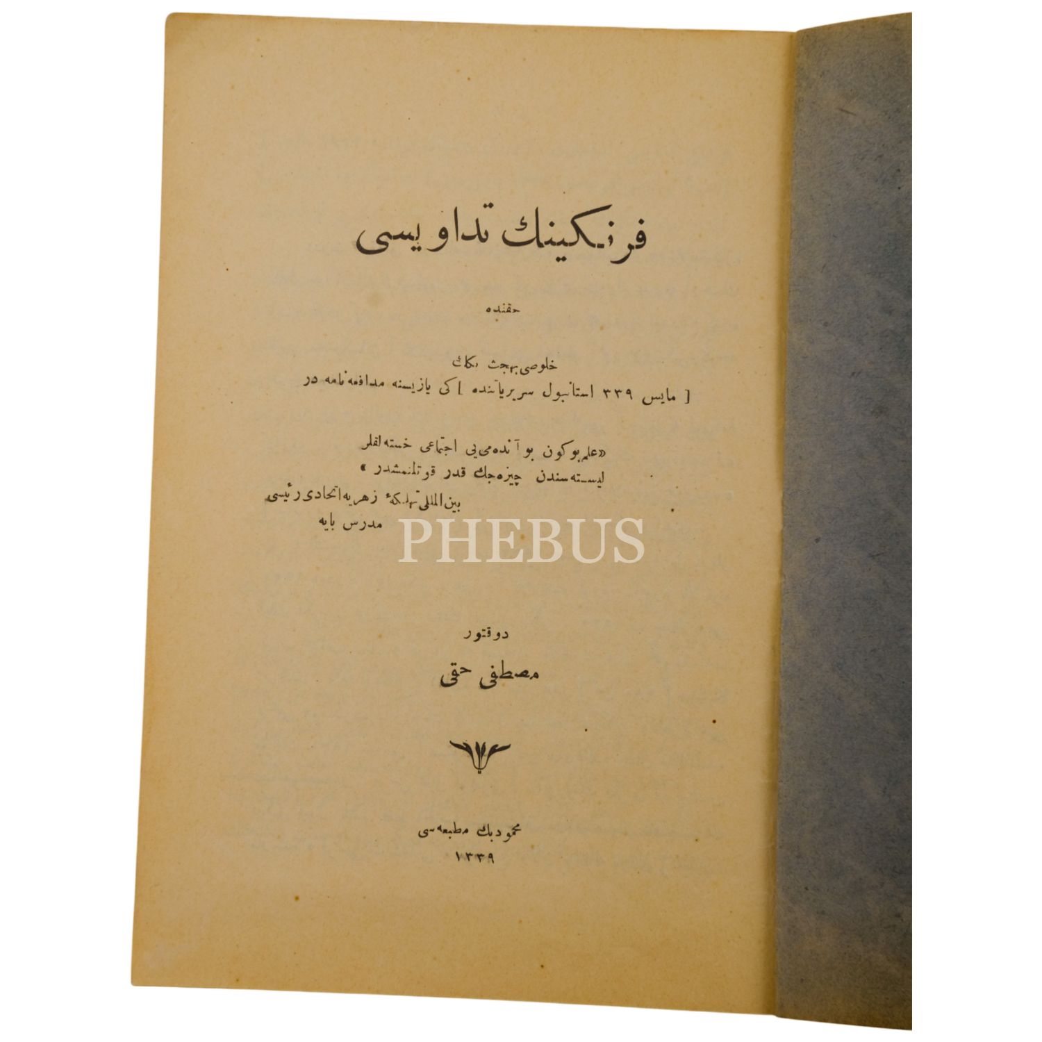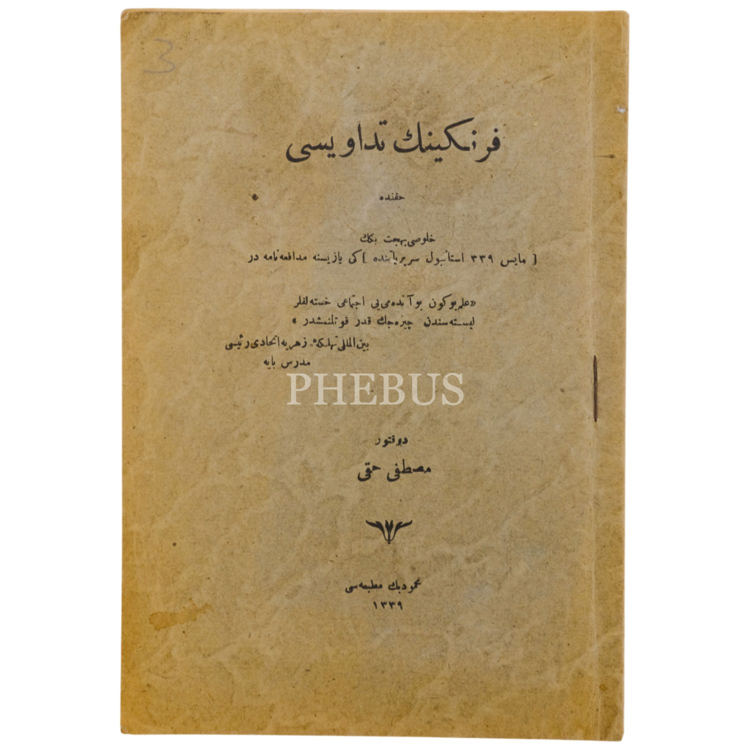 FRENGİNİN TEDAVİSİ, Mustafa Hakkı, 1339, Mahmut Bey Matbaası, 24 sayfa, 14x20 cm...
