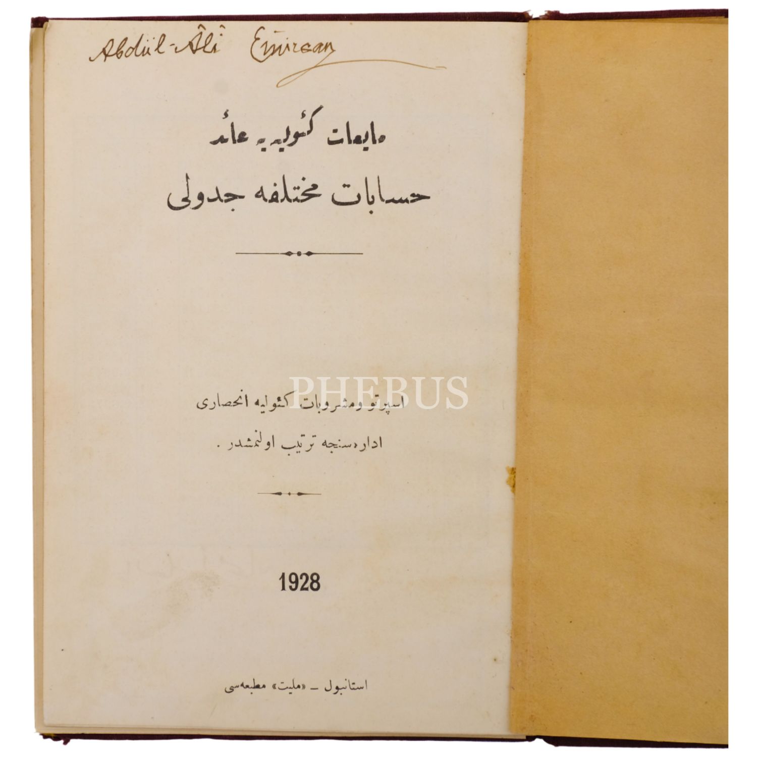 MAİYAT-I KÜLLİYEYE AİT HESABAT-I MUHTELİFE CETVELİ, 1928, İspirto ve Meşrubat-i Küüliye İnhisarı İdaresi, 41 sayfa, 14x20 cm...