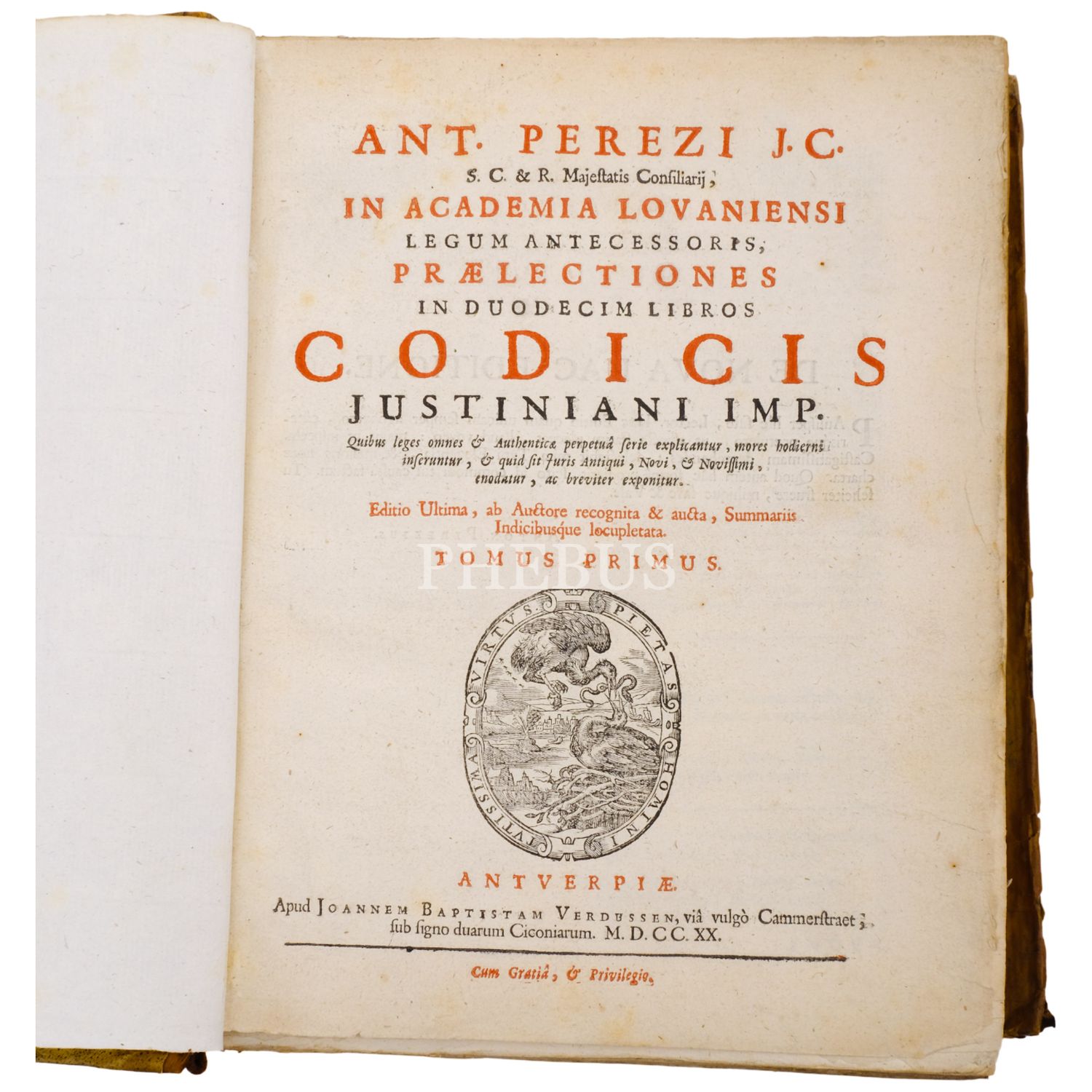 PRAELECTIONES in DUODECIM LIBROS CODICIS JUSTINIANI IMP., Ant. Perezi, 1720, Ludovicum et Danielem Elzevirios, 690+662 sayfa, 21x25 cm...